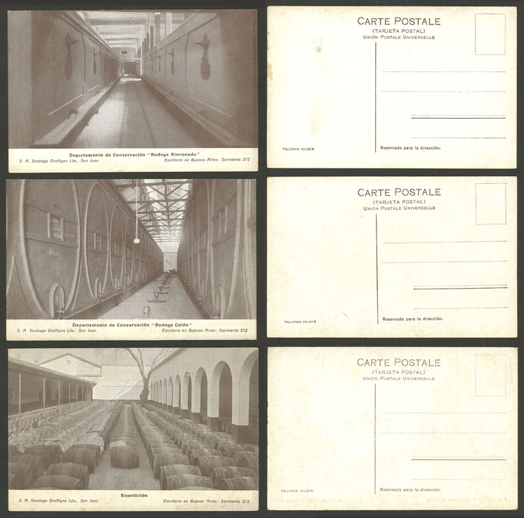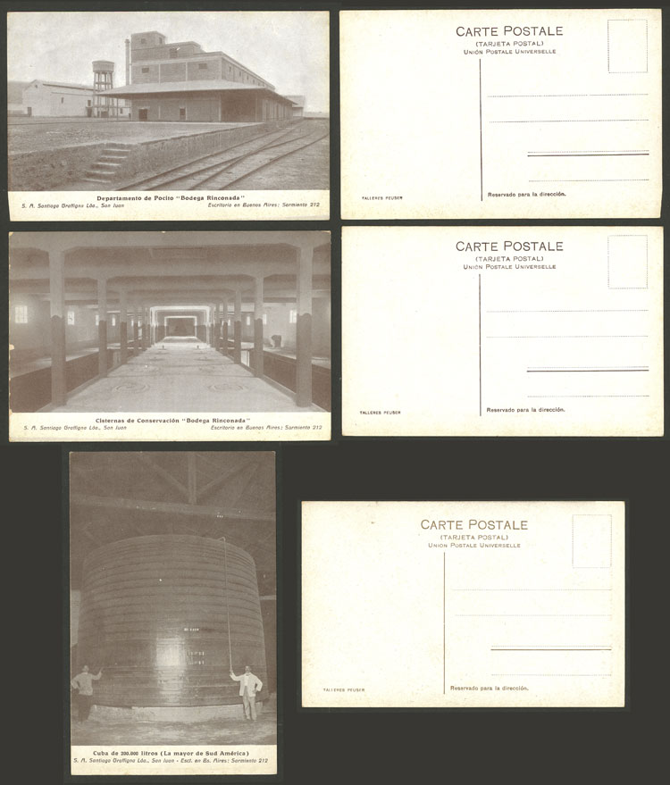WINERY "RINCONADA", of Santiago Graffigna, San Juan: Set of 6 old PCs with very good views, VF quality, rare! (Image) (Image-02)