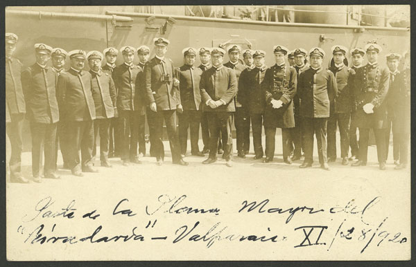 Officers of battleship "Rivadavia", real photo PC dated Valparaíso 28/NO/1920, VF quality, rare! (Image) (Image-02)