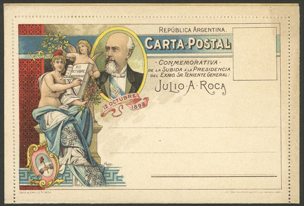 1898, lettercard commemorating the presidency of Gral. Roca, unused, excellent quality, rare! (Image)