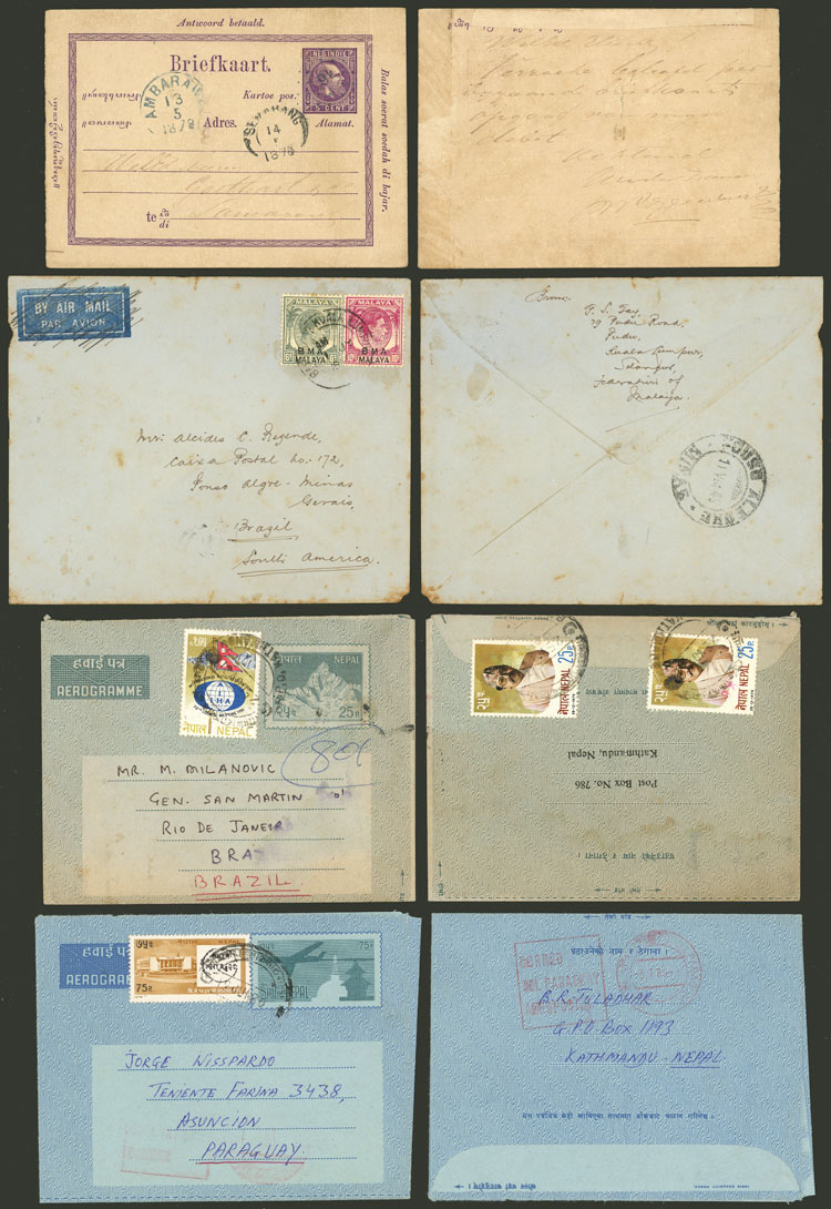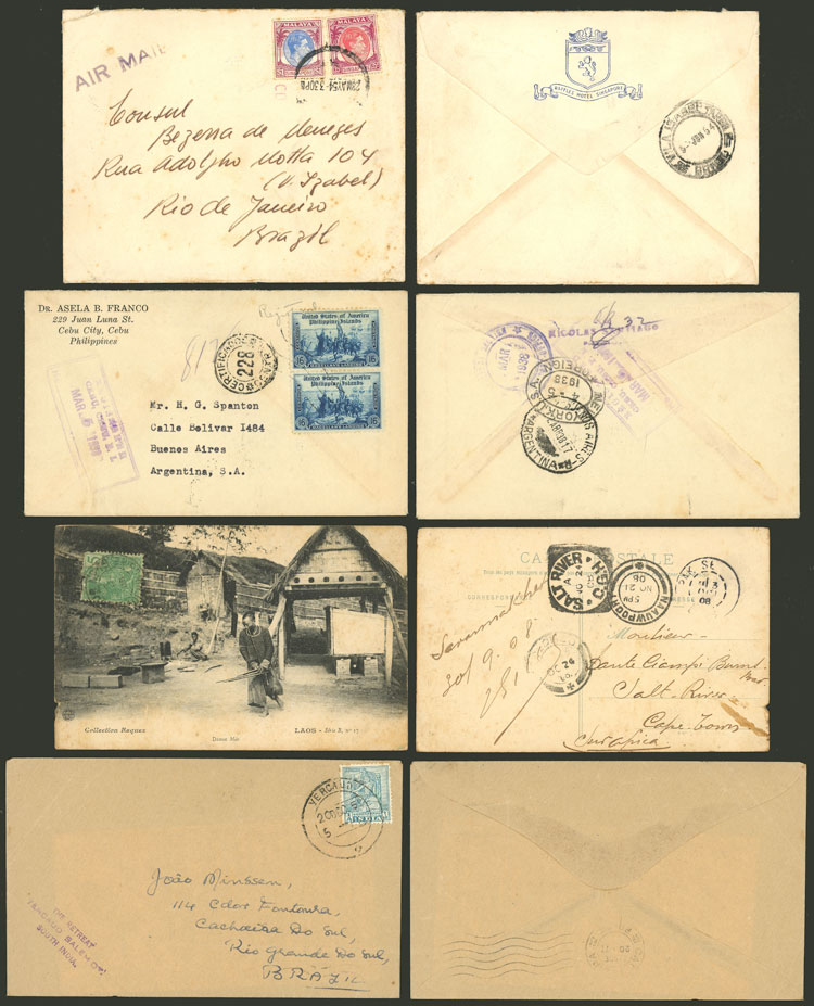 ASIAN COUNTRIES: 19 Used covers, postcards, postal stationeries, etc. of various countries and periods, several of high individual value, good opportunity at low start! IMPORTANT: Please view ALL the photos of the lot, because all the