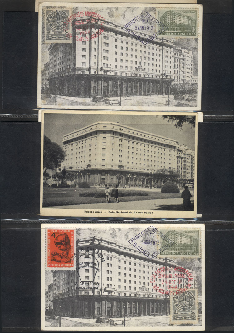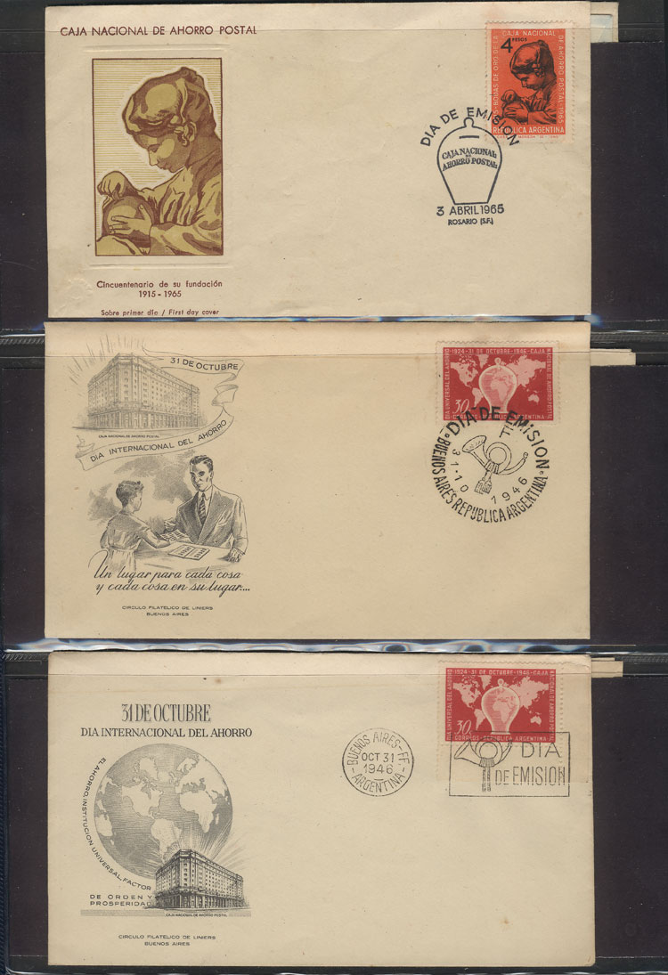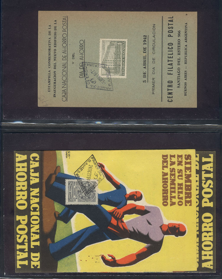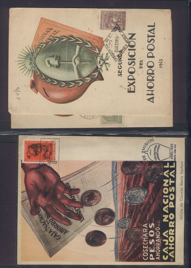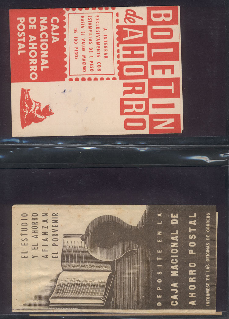 POSTAL SAVINGS BANK: Binder with collection of school saving cards (several different, some mint and some with all the stamps or partially filled), varied forms, advertising leaflets, maximum cards and first day cards, miniature
