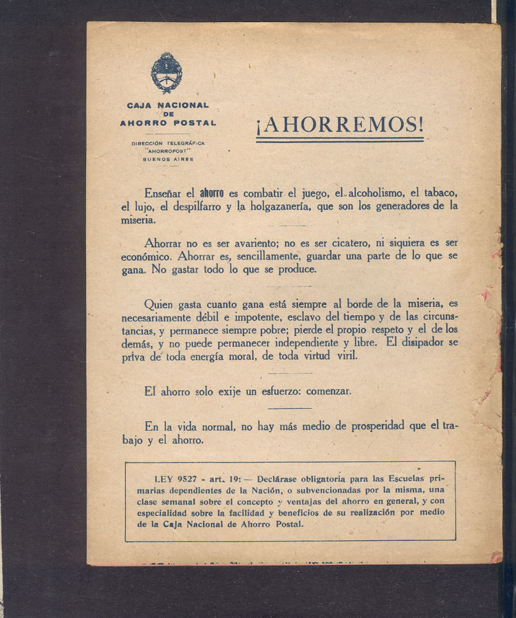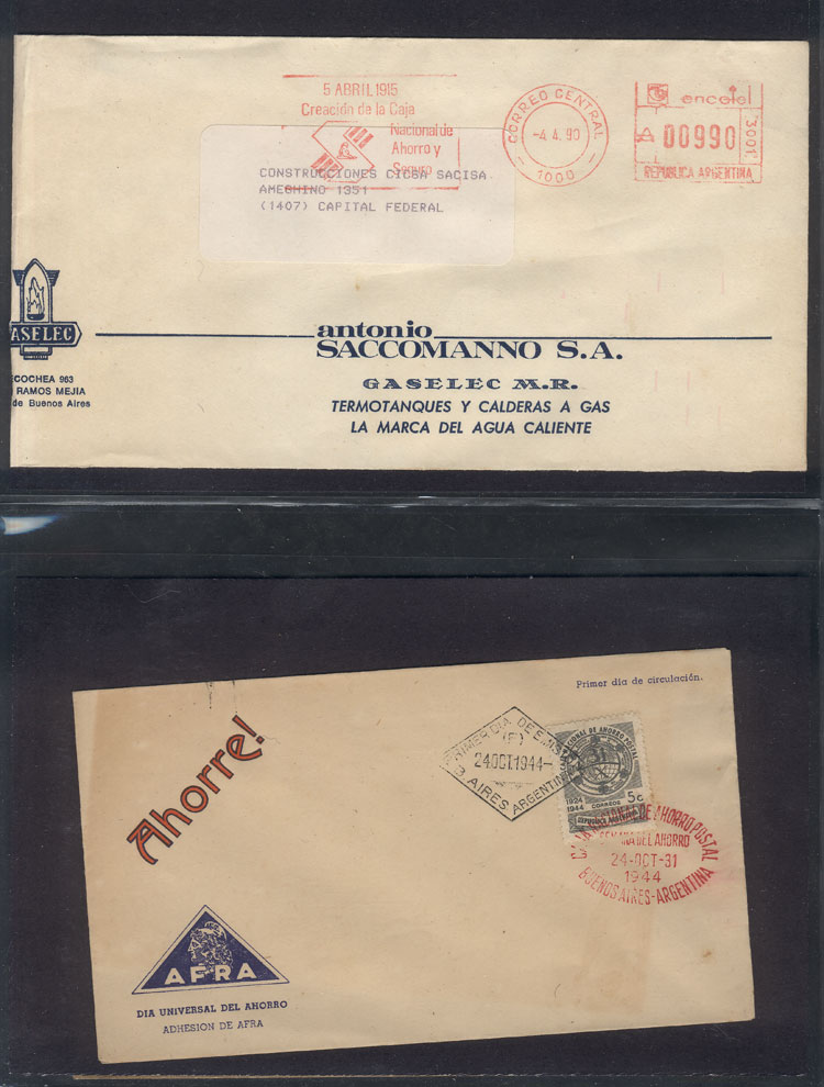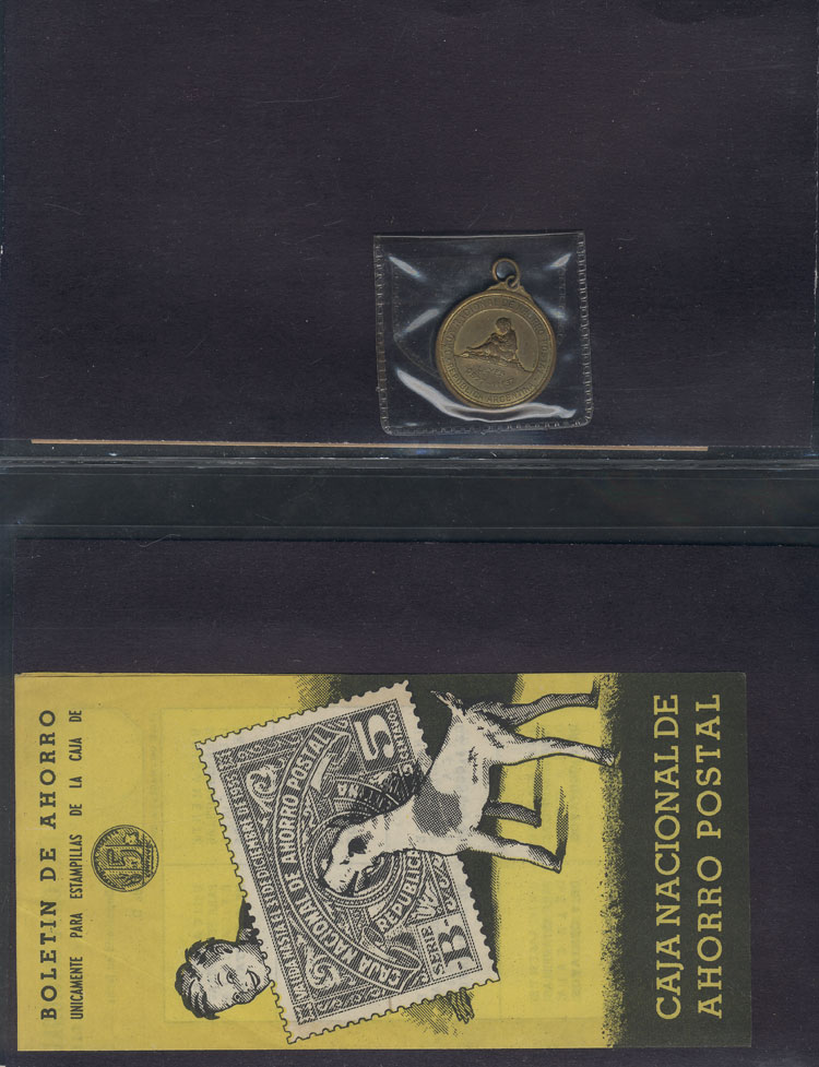 advertising posters, covers with special postmarks, some stamps and postcards, a rare medal awarded to saving students, covers with special slogan cancels, some very old and rare, a life insurance and savings policy, several old notebooks (or covers)