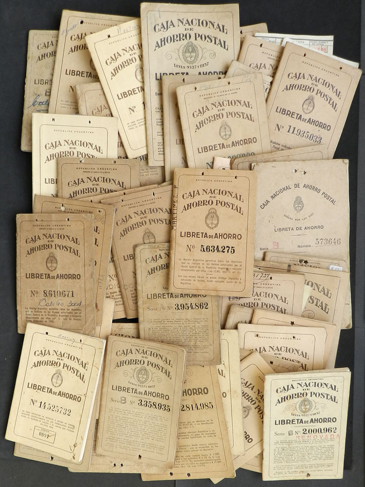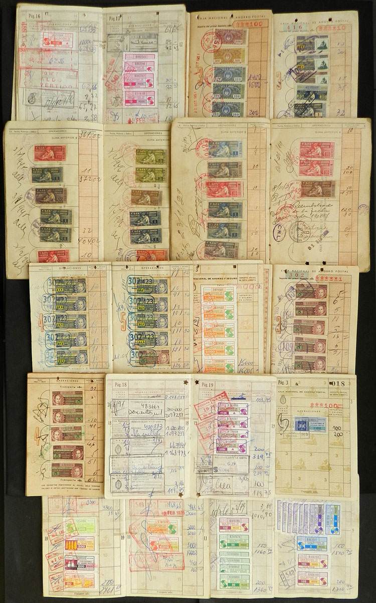 POSTAL SAVINGS BANK: Lot of more than 60 postal saving books with many stamps of all periods, in general of fine to VF quality. There are many books with several dozens stamps, and some with few, but the collector will find here an
