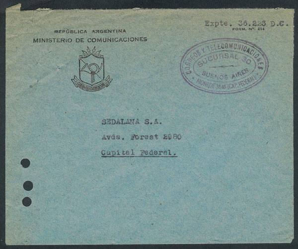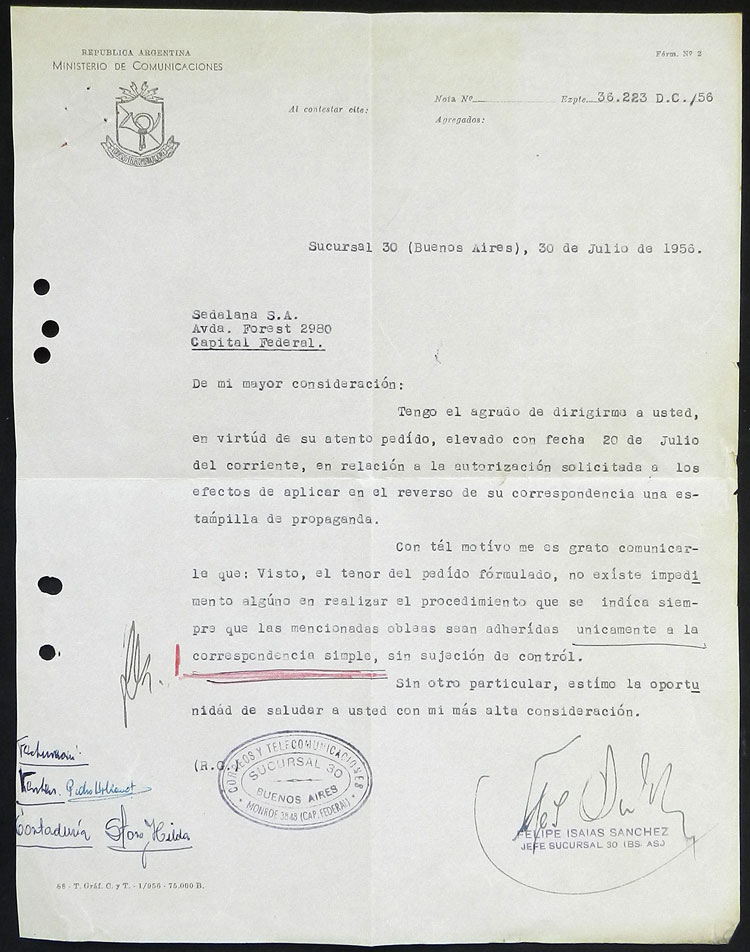 Cover and letter of the Argentine Mail of 30/JUL/1956 to Sedalana co., indicating that advertising cinderellas can be affixed to the back of covers, as long as they are affixed to UNREGISTERED or standard mail, very interesting! (Image) (Image-02)