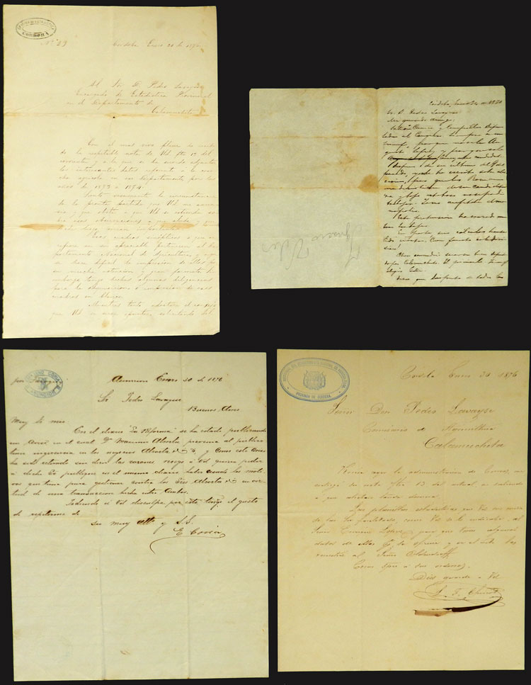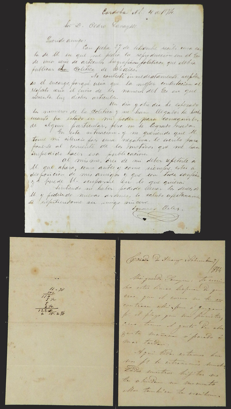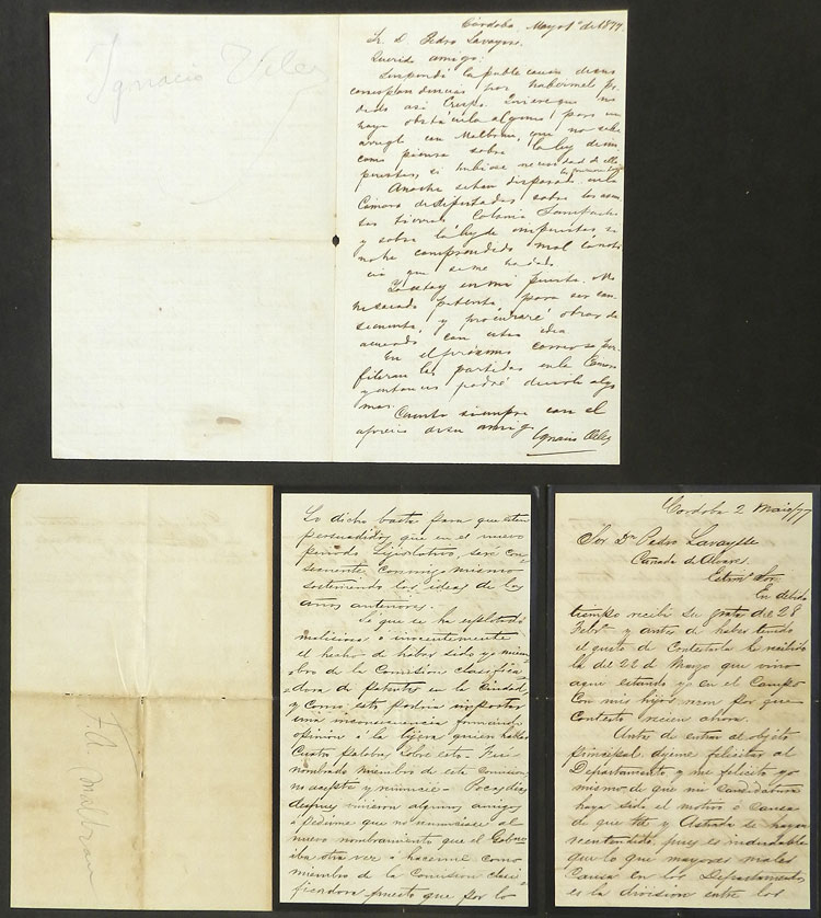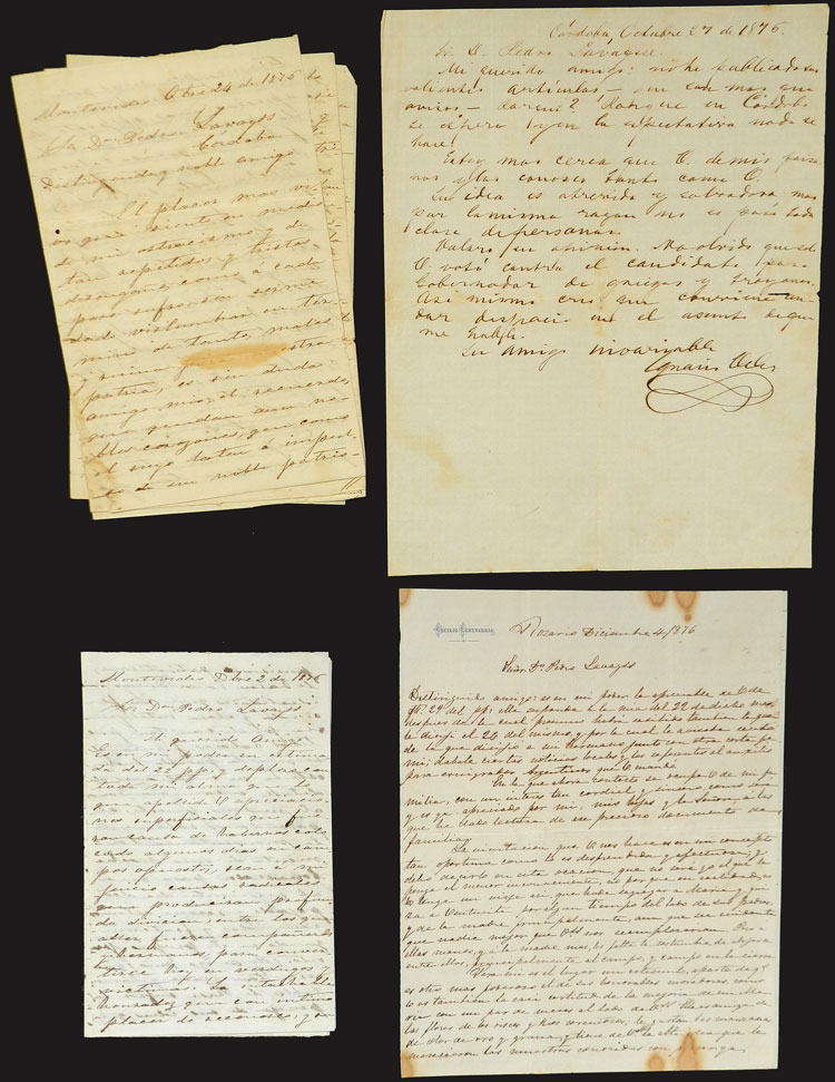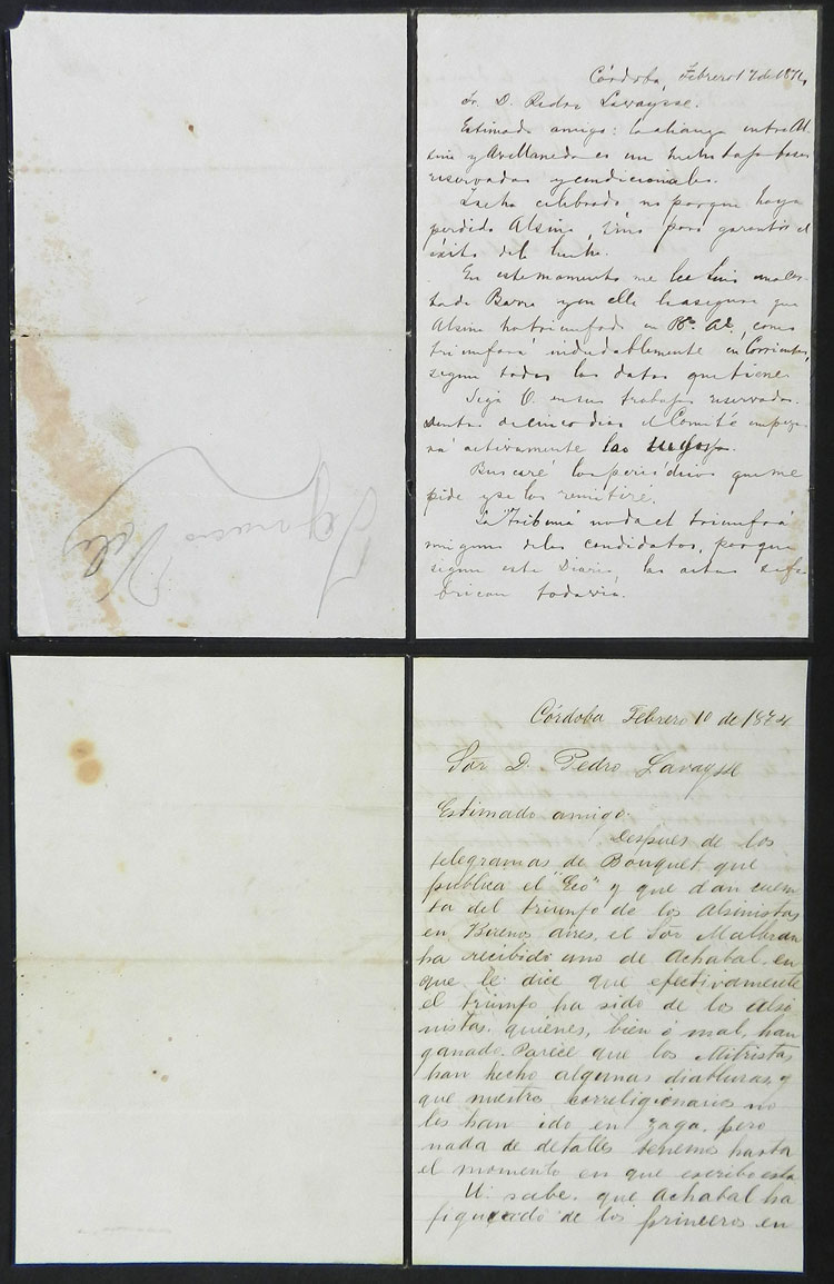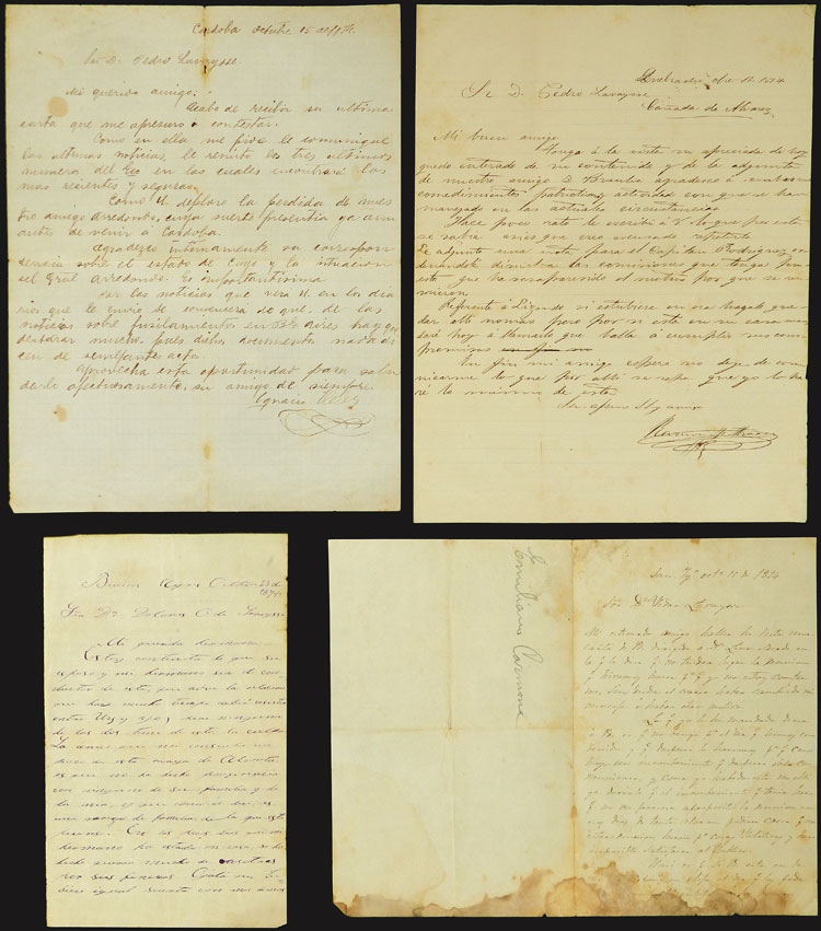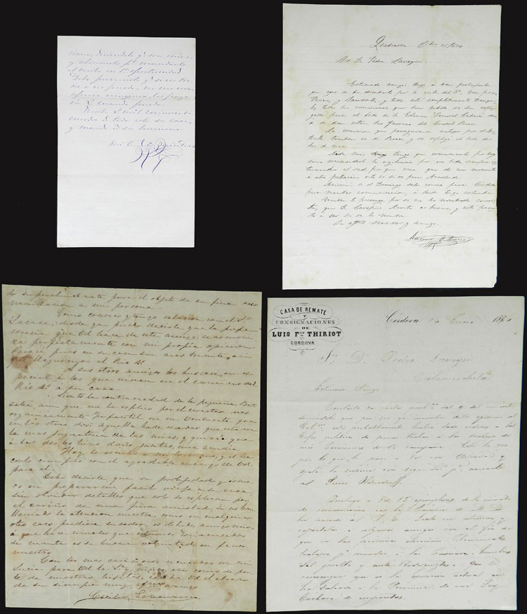 de Alvarez, San Javier, Rosario, Asunción, Quebracho, Santiago del Estero, Montevideo. Many of the letters have long considerations about the political situation of the country and the Province of Córdoba (specially about the Departament of