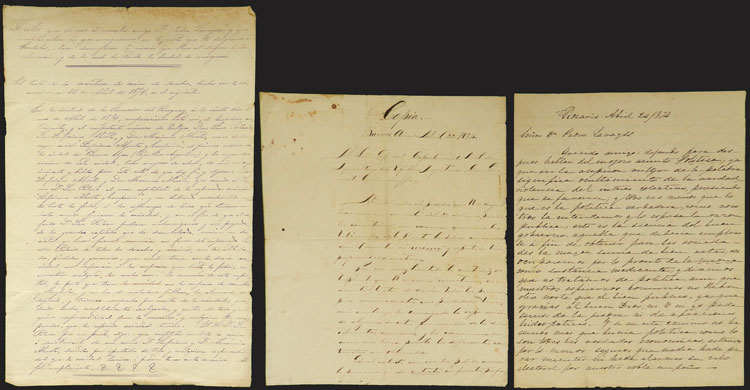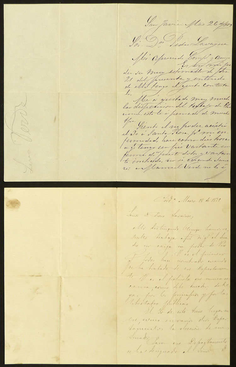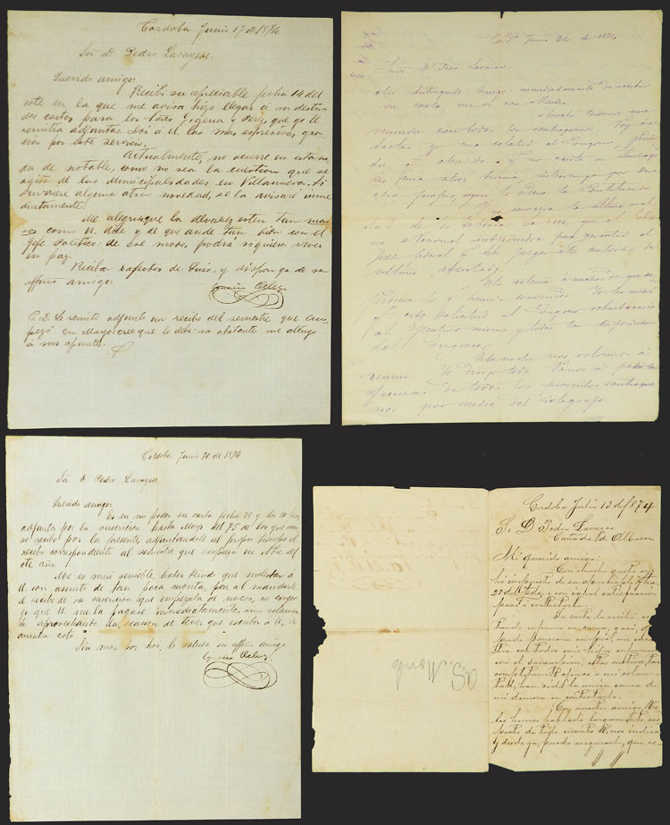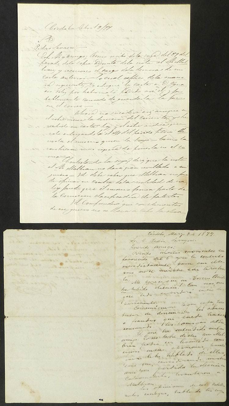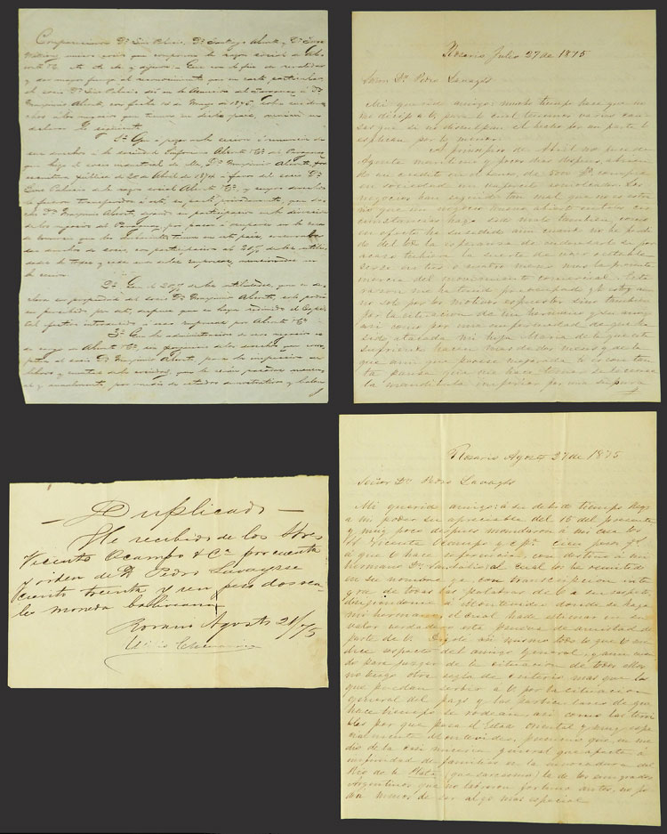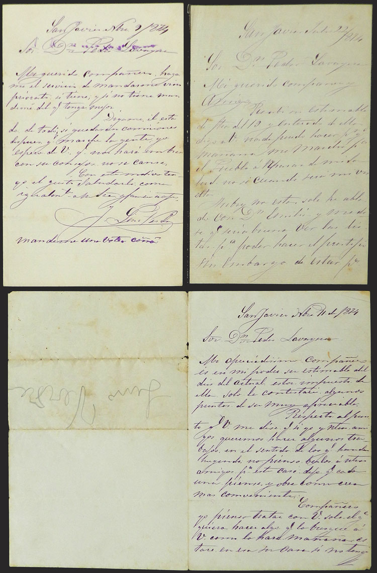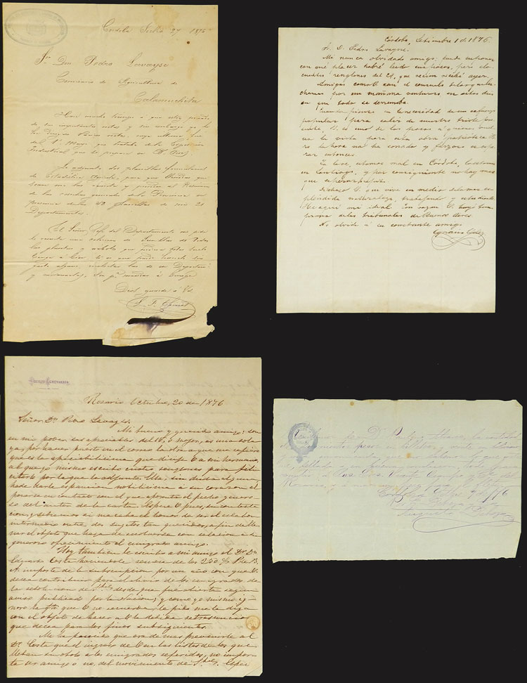de Alvarez, San Javier, Rosario, Asunción, Quebracho, Santiago del Estero, Montevideo. Many of the letters have long considerations about the political situation of the country and the Province of Córdoba (specially about the Departament of