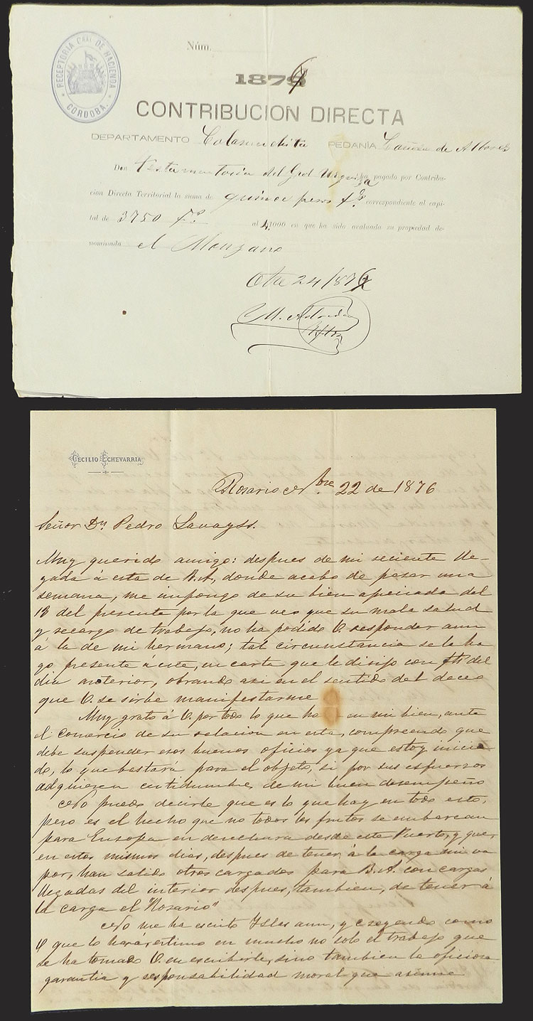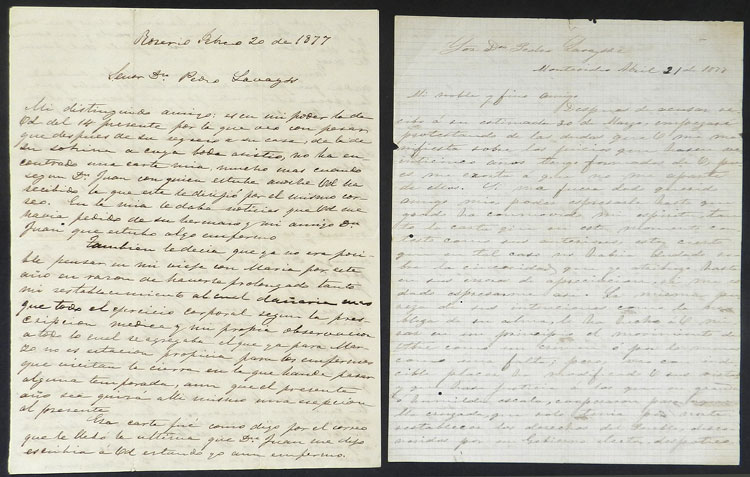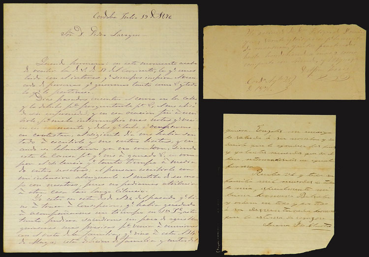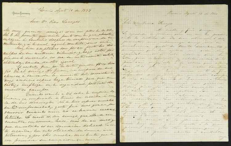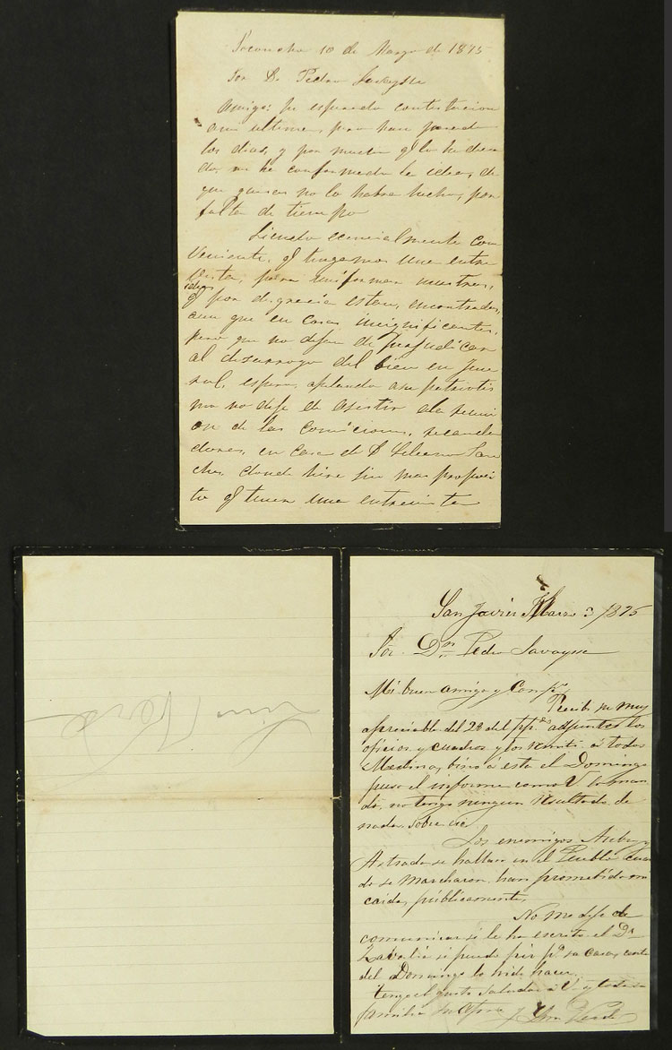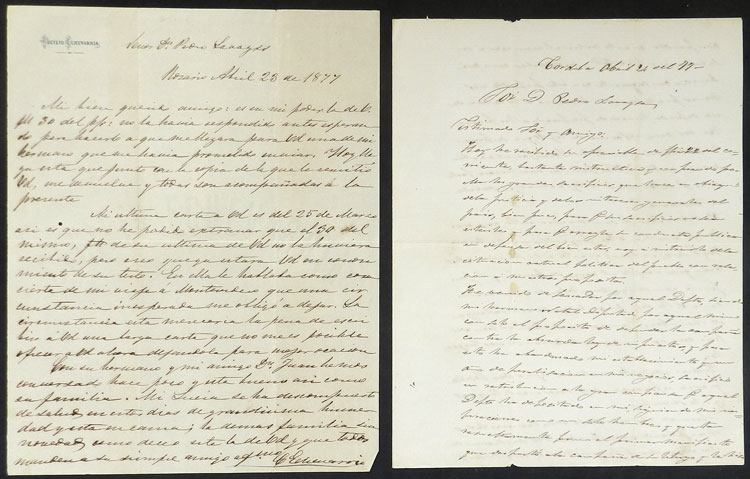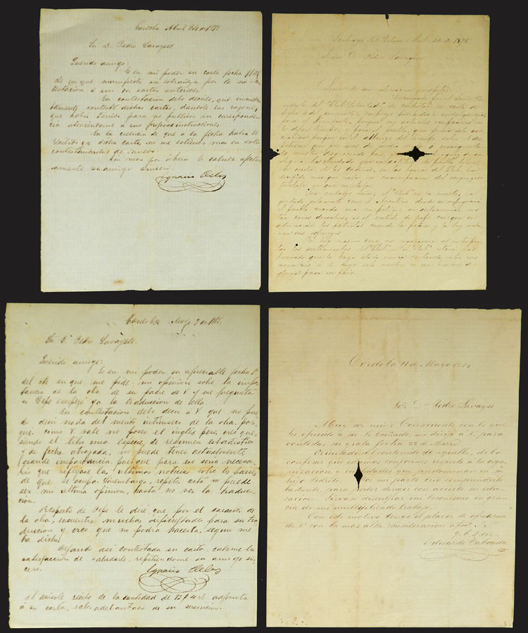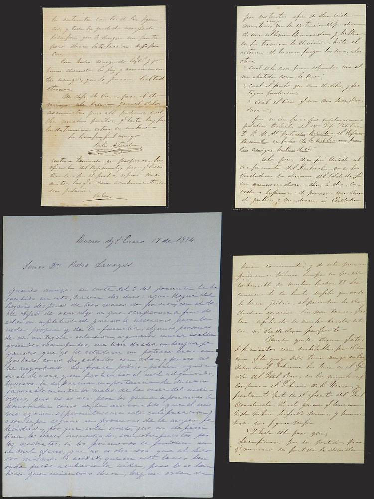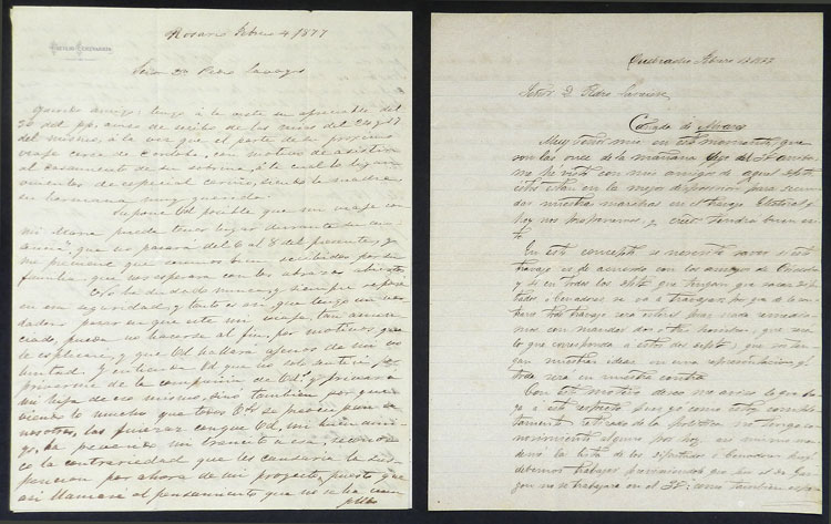 de Alvarez, San Javier, Rosario, Asunción, Quebracho, Santiago del Estero, Montevideo. Many of the letters have long considerations about the political situation of the country and the Province of Córdoba (specially about the Departament of