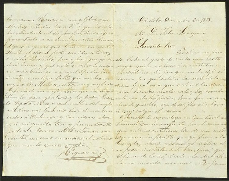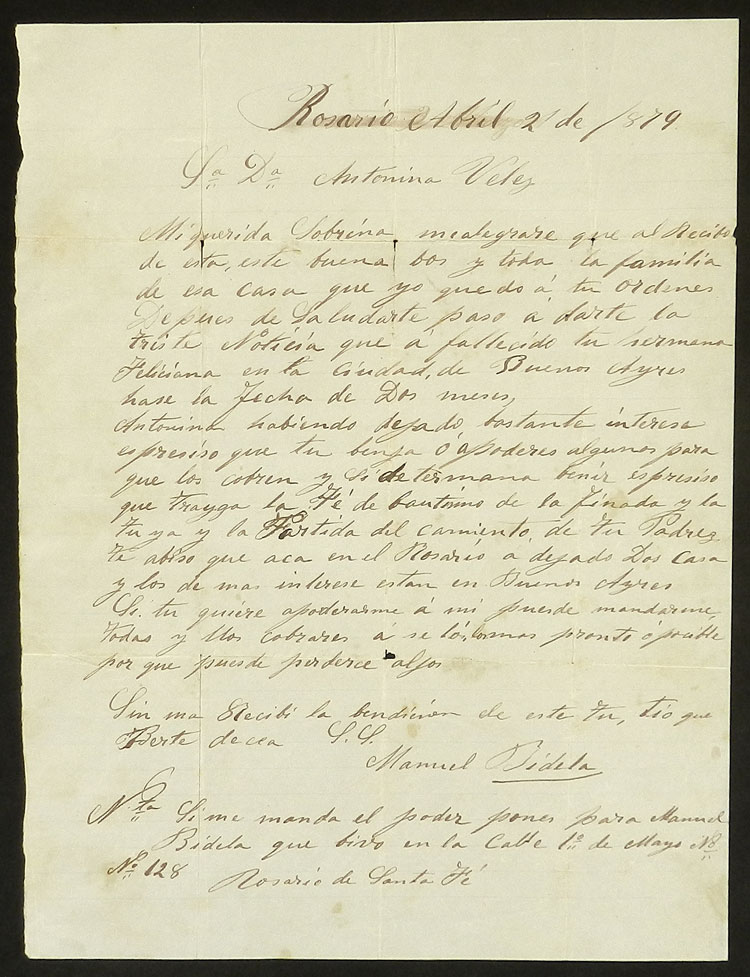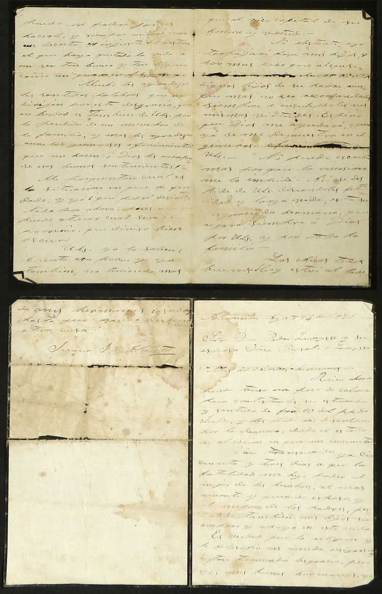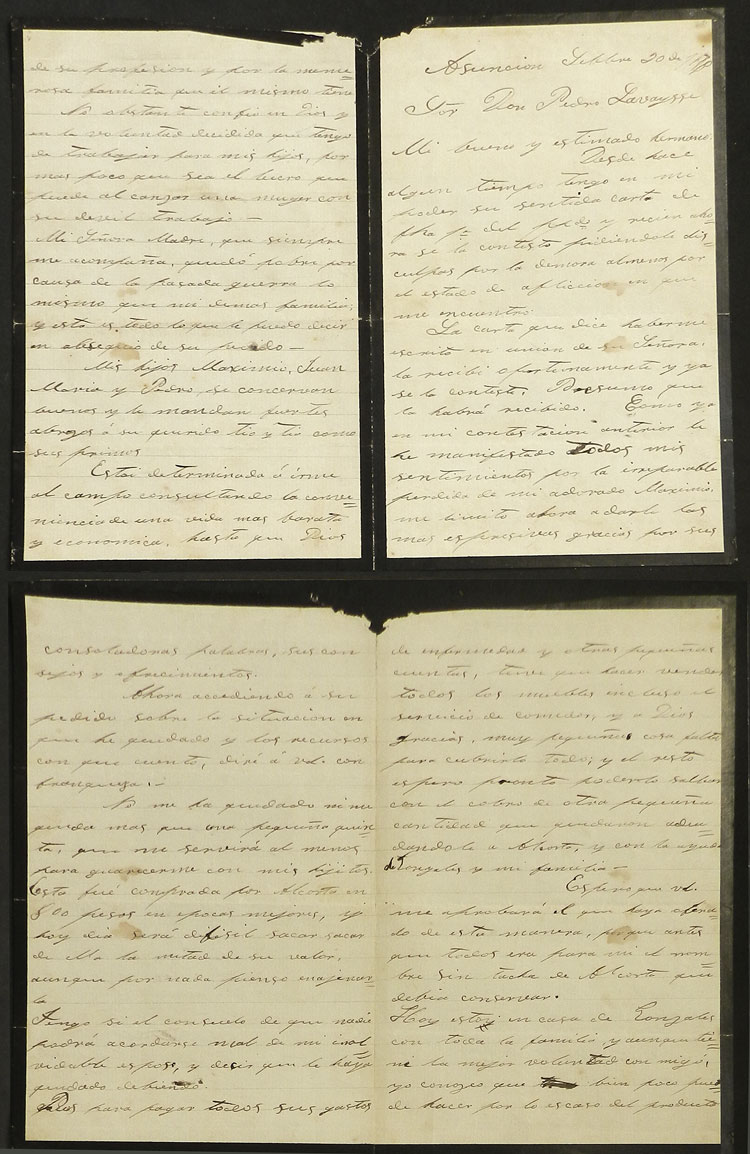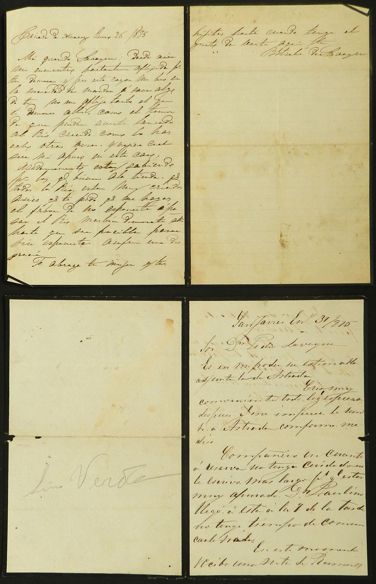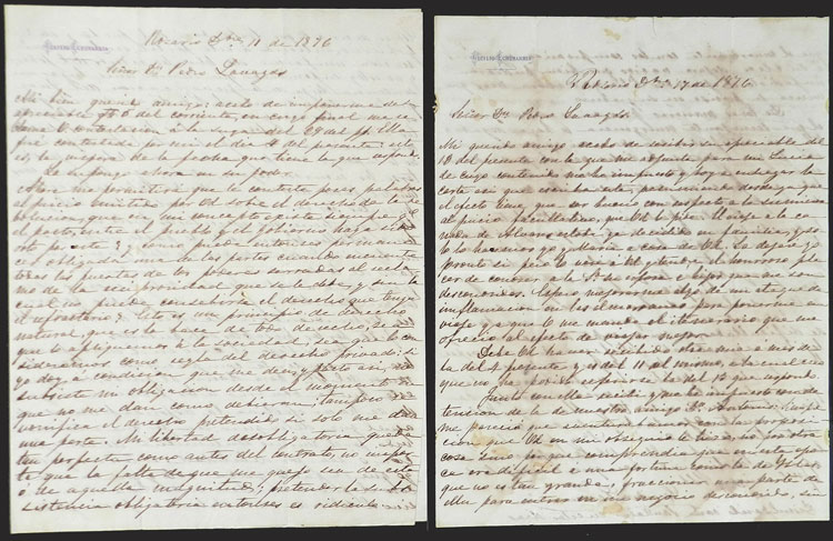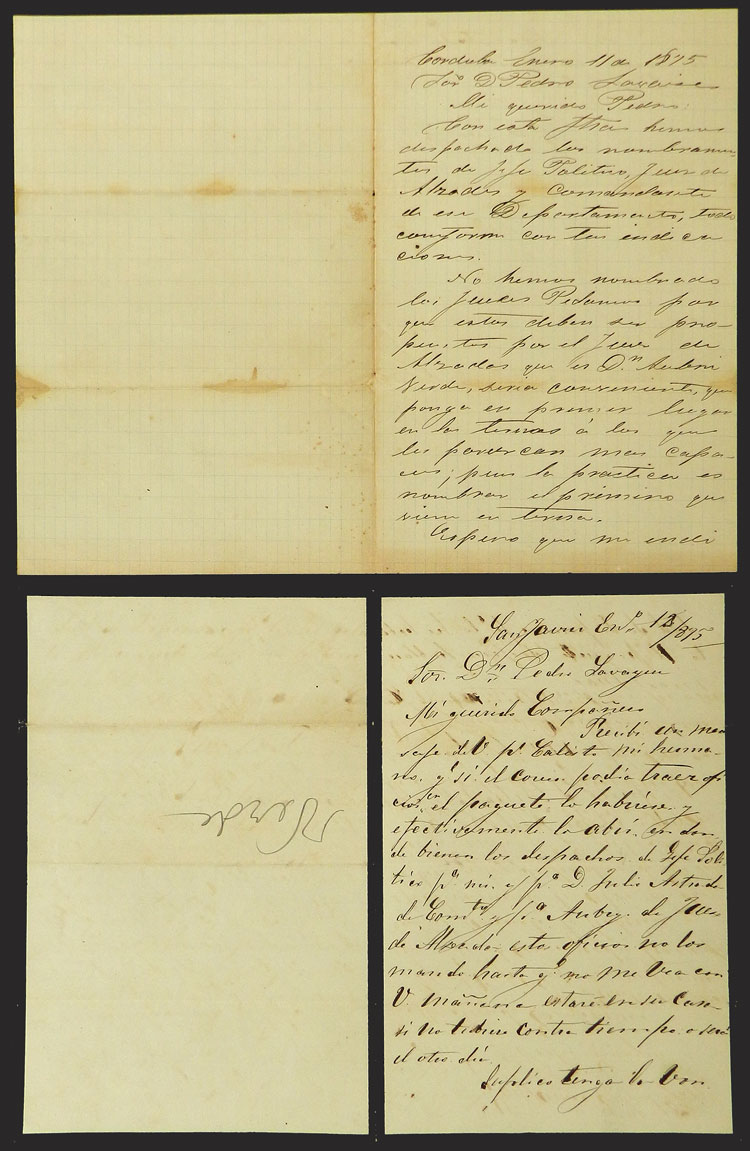 de Alvarez, San Javier, Rosario, Asunción, Quebracho, Santiago del Estero, Montevideo. Many of the letters have long considerations about the political situation of the country and the Province of Córdoba (specially about the Departament of