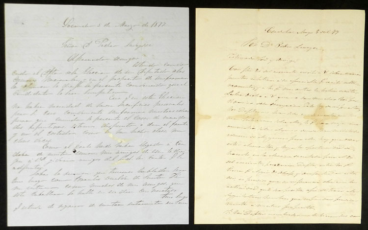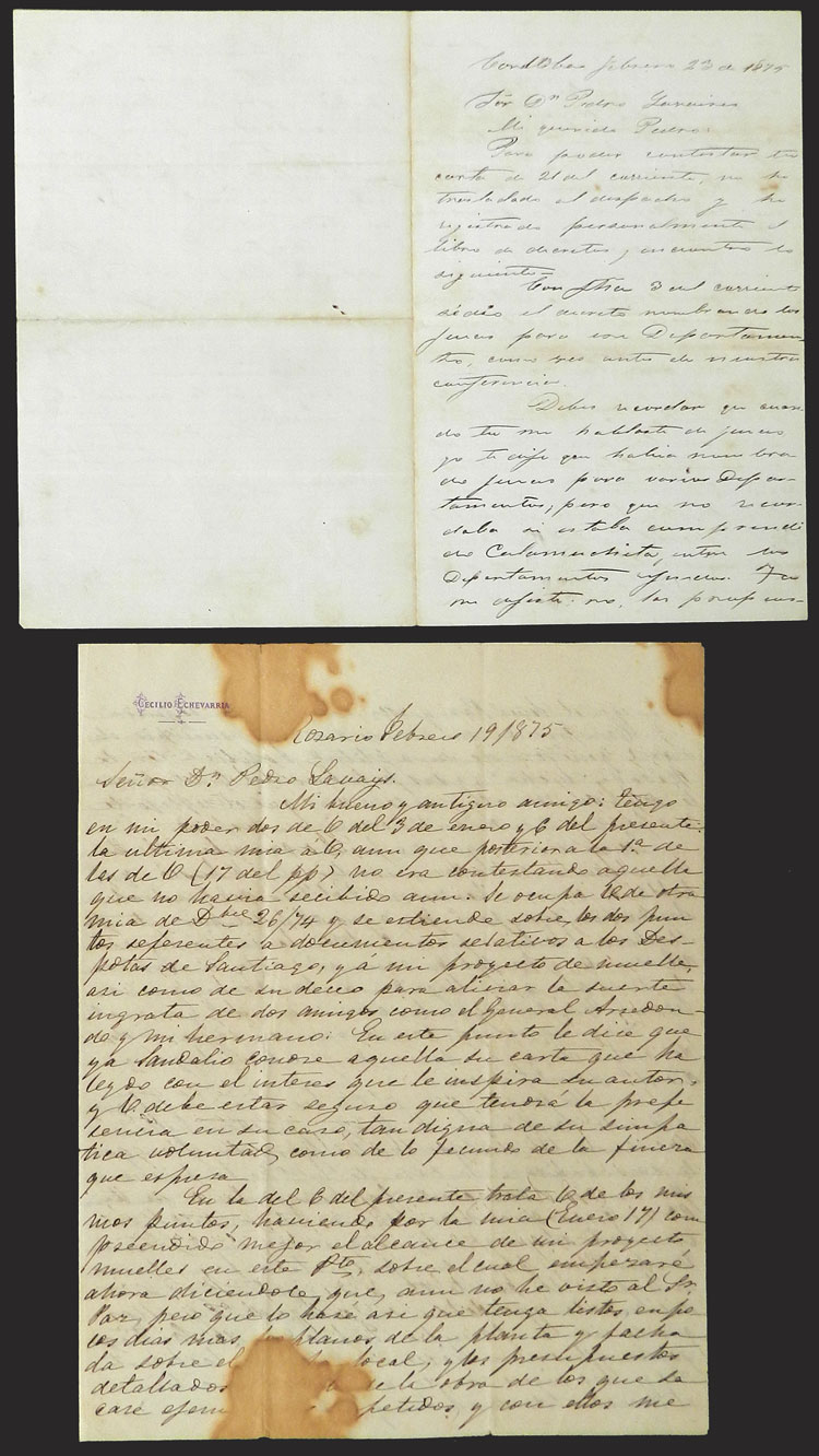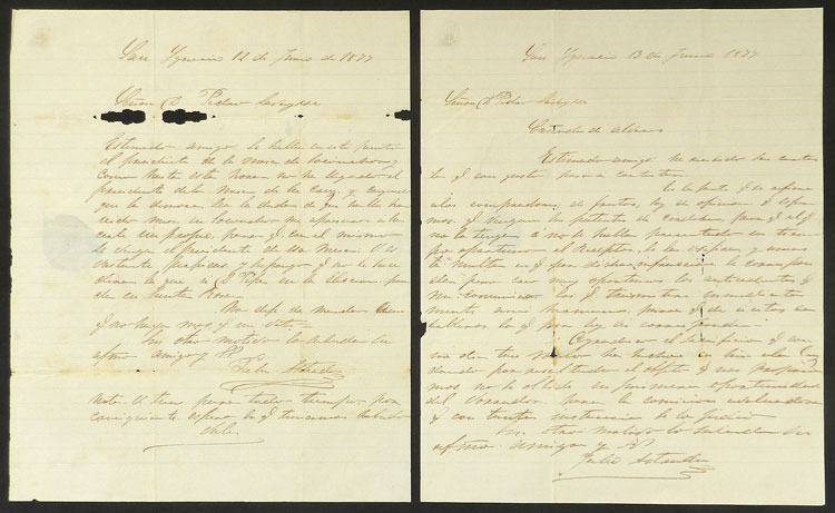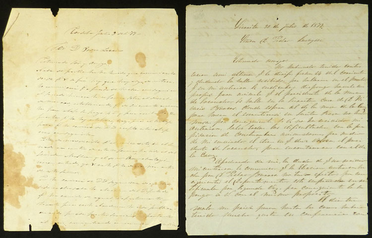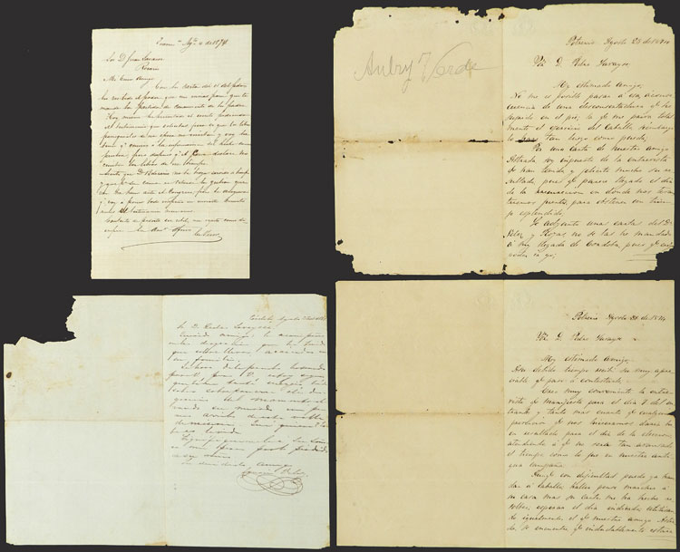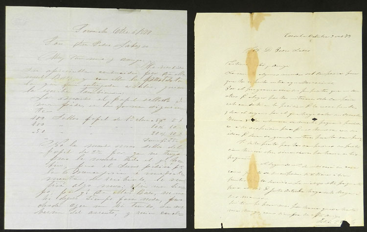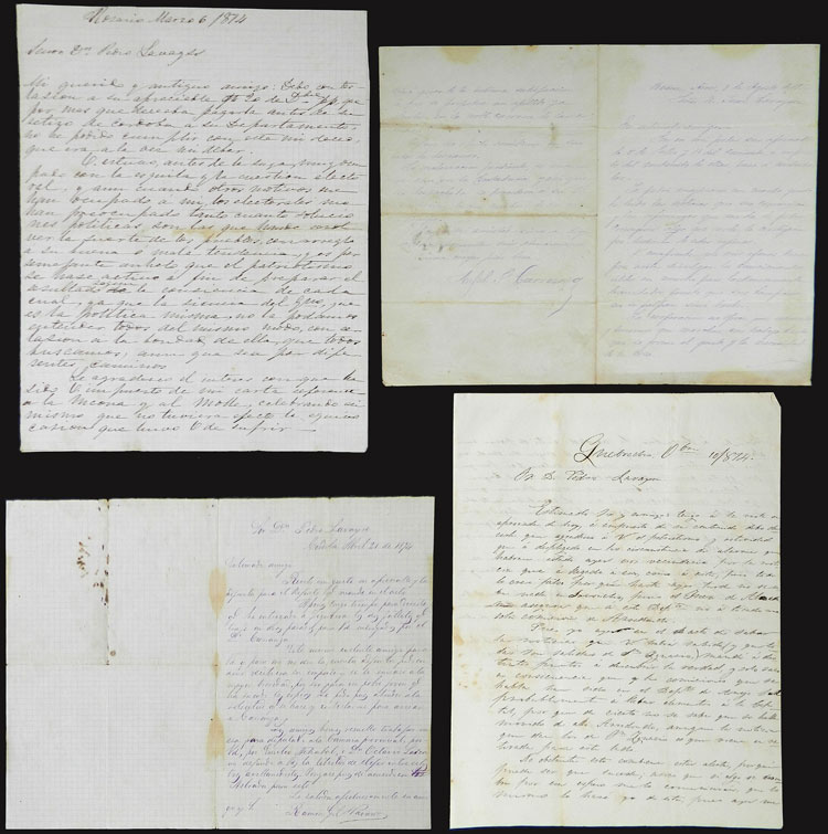 ARCHIVE: Family and commercial mail archive, with 165+ letters and documents, most dated between circa 1874 and 1880, almost all with long texts and very interesting and historical contents describing the political, environmental, commercial