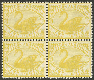 1899/1901 Swan 2p. yellow with watermark "V - Crown", MNH block of 4 of excellent quality! (Image)
