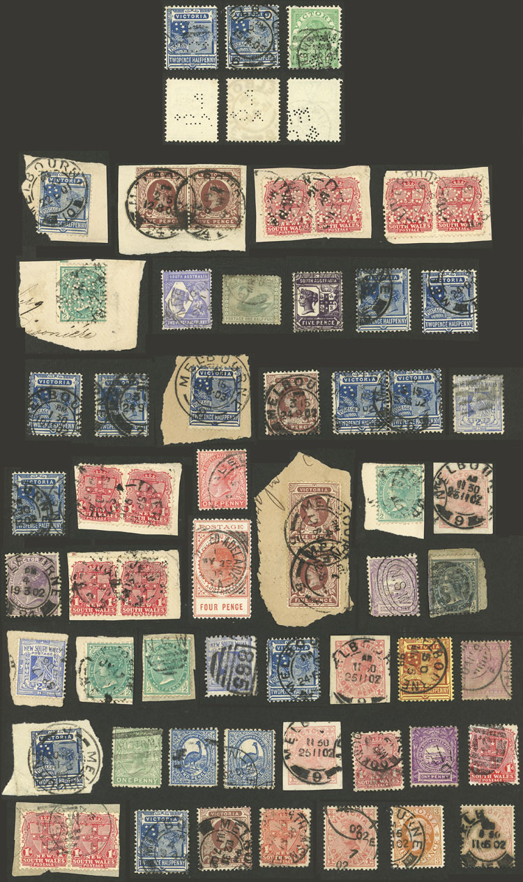 old used stamps (some on fragments), some perfed (perfin or official), very fine general quality, interesting lot! (Image)