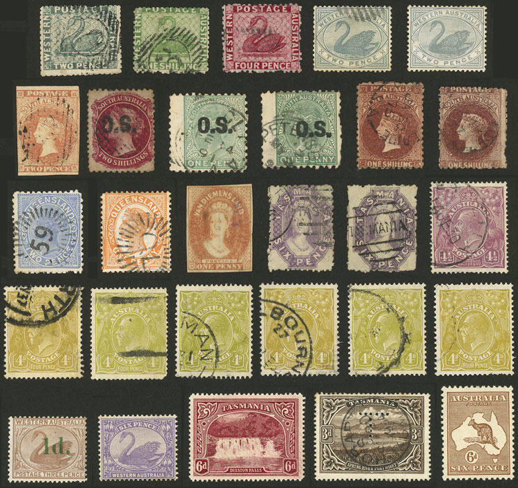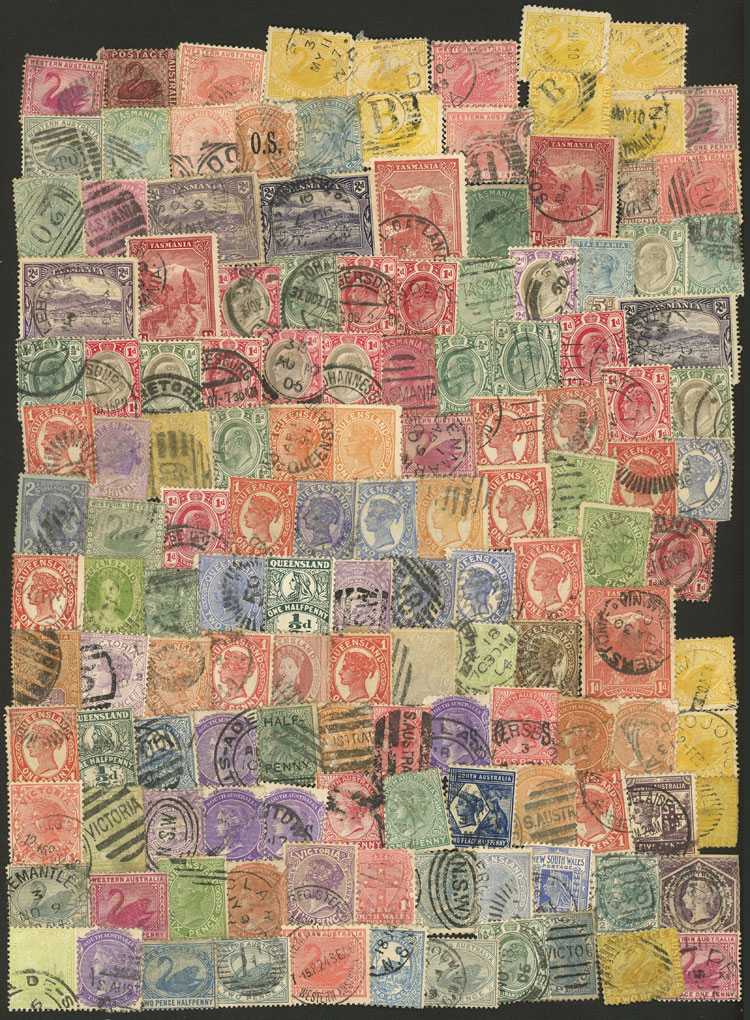 varied stamps, mixed quality (some with small defects, others of fine quality), including many of Australian states, very interesting for the specialist! (Image)