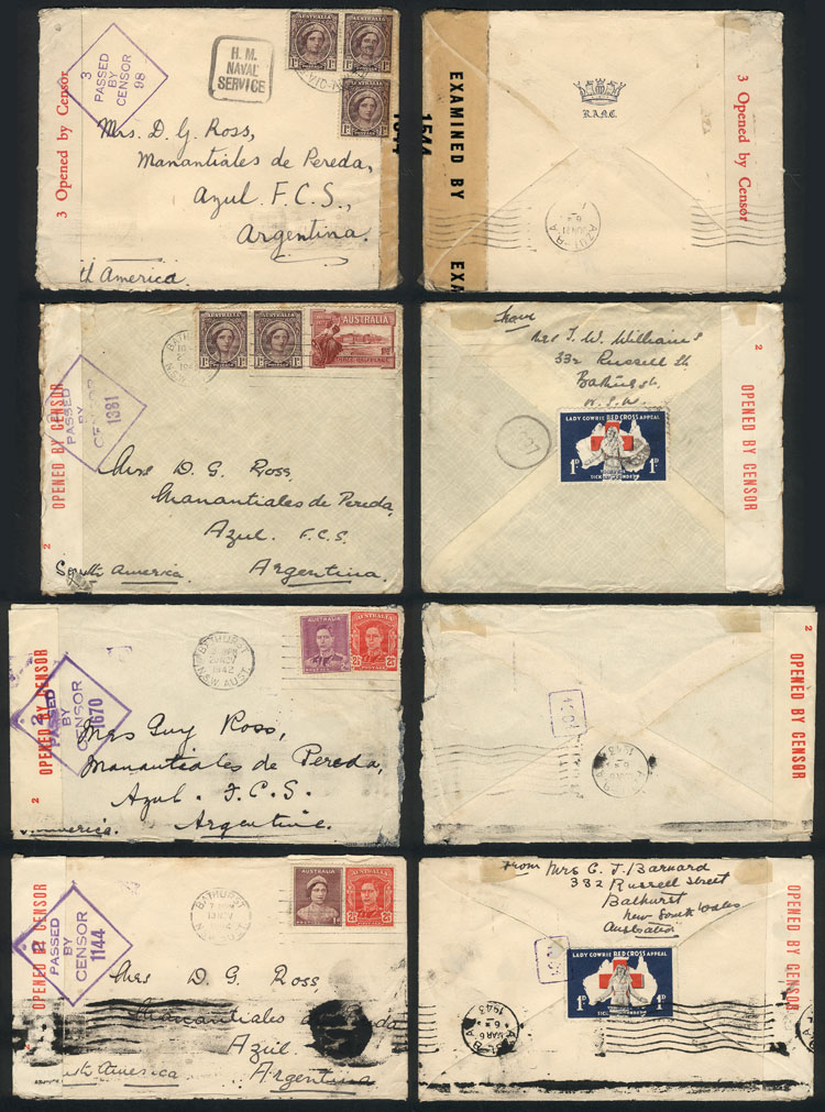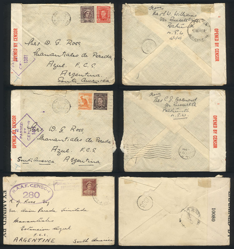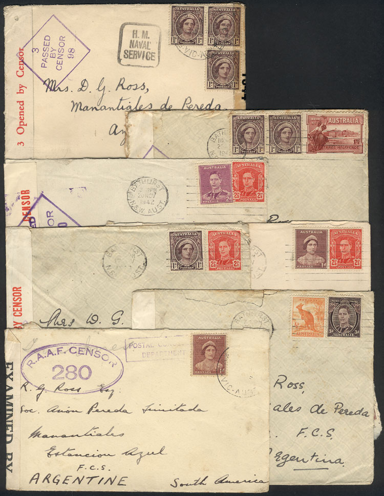Group of 7 covers sent to Argentina in 1942/3 with nice postages and interesting CENSOR marks, one missing one stamp of the original postage, the rest of VF quality, rare lot for the specialist! (Image) (Image-02)