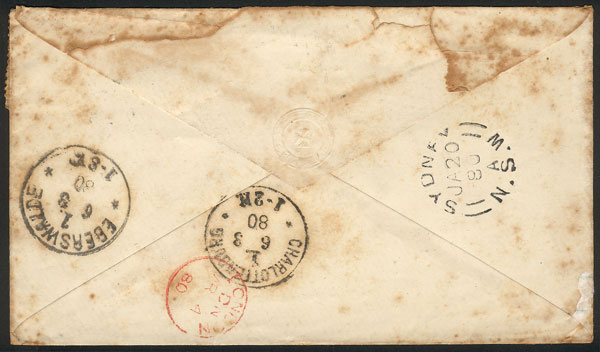 on 6/MAR and was forwarded to Charlottensburg, with arrival on the same day. With some stain spots, all the same very attractive and interesting! (Image) (Image-02)