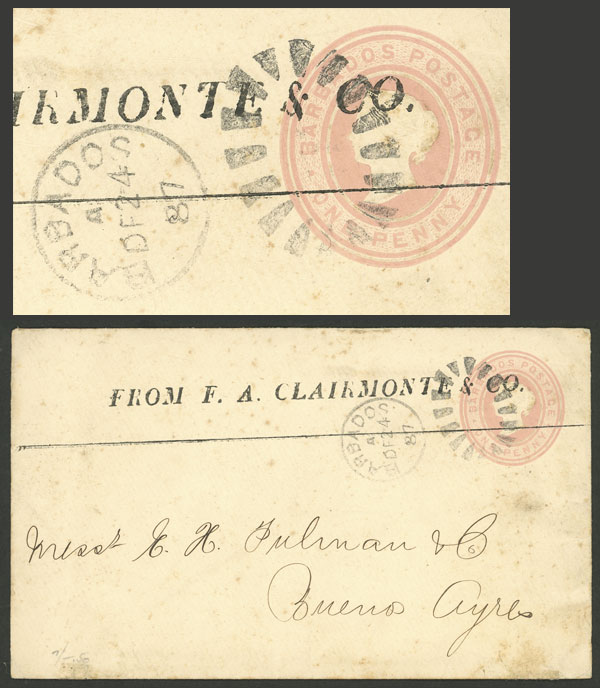 1p. Stationery envelope sent to Argentina on 24/DE/1887, with interesting printed corner card, very nice, rare destination! (Image) (Image-02)