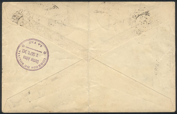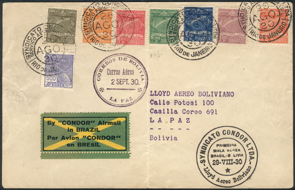28/AU/1930 First flight Rio de Janeiro - La Paz (Bolivia), cover franked by RHM.K-1/K-7, fine quality! (Image) (Image-02)