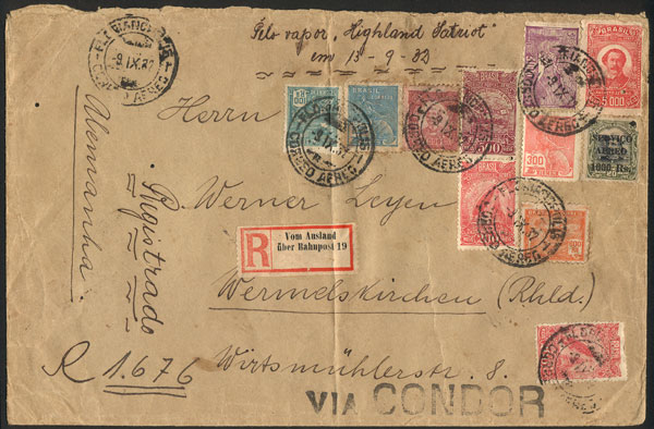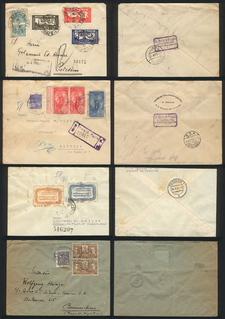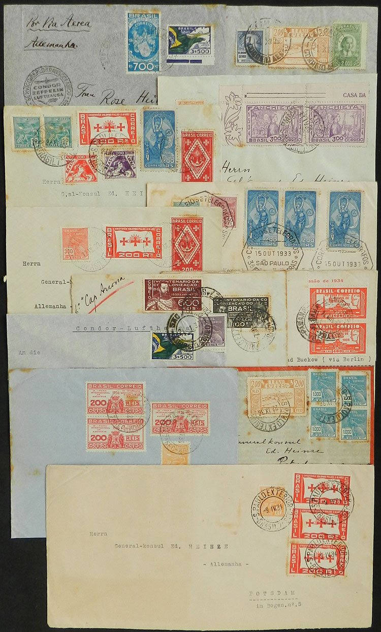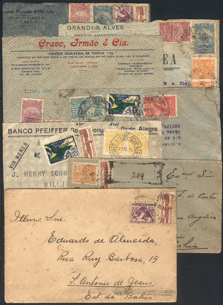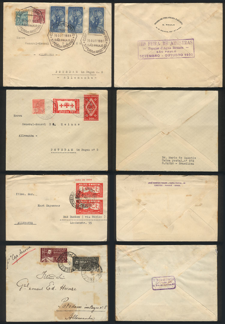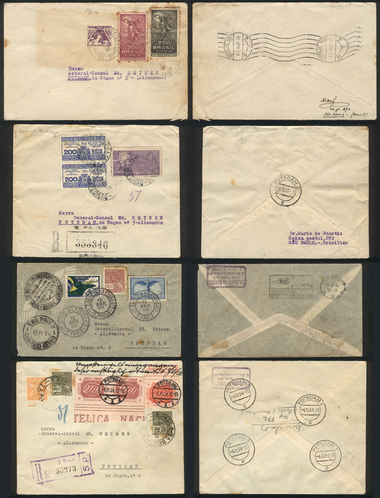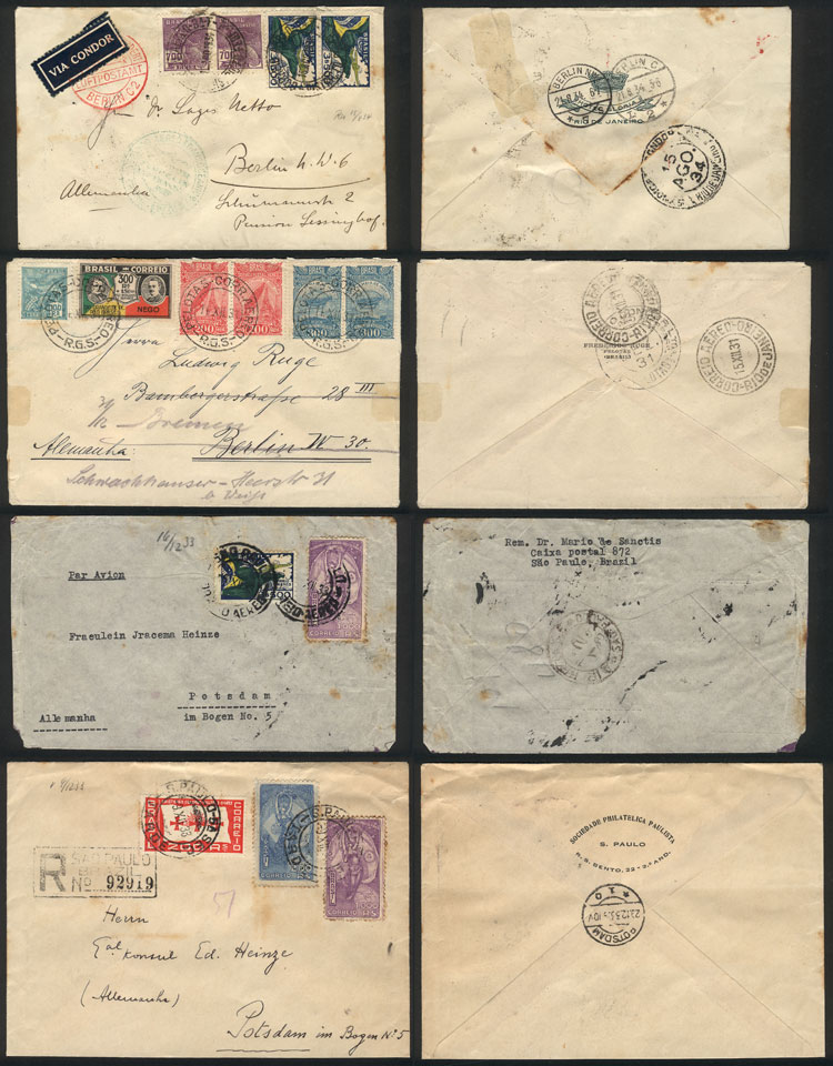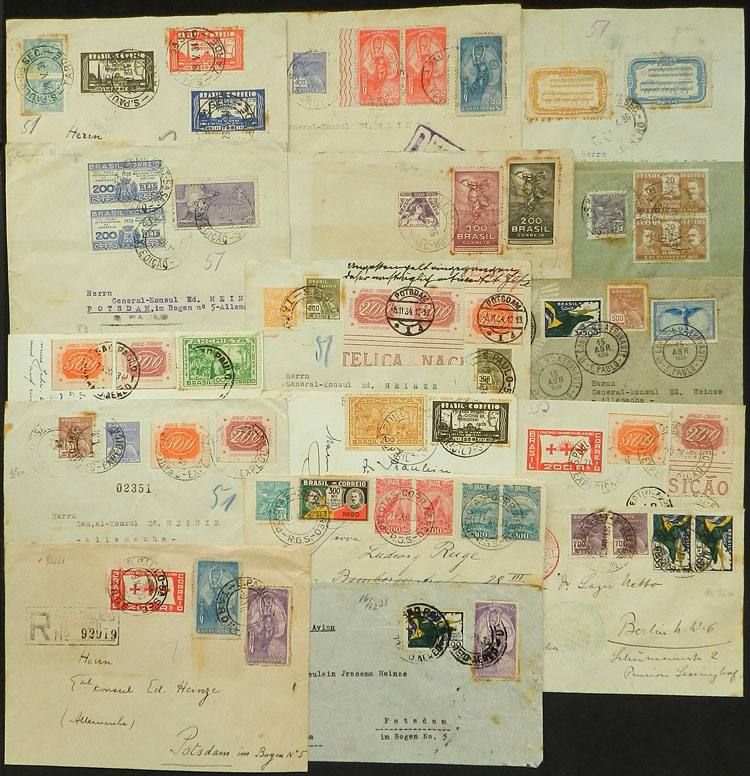 Beautiful group of 16 covers sent overseas between 1931 and 1936, most to Germany. All with very good postages that include commemorative stamps, and some rates are very scarce, fine to VF general quality, very interesting lot for the