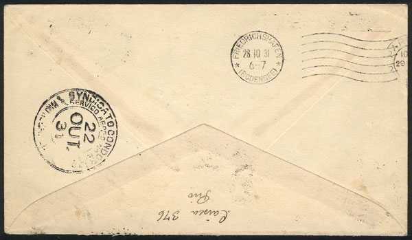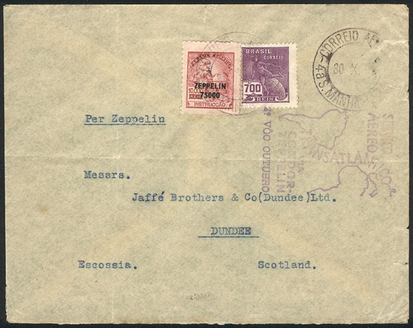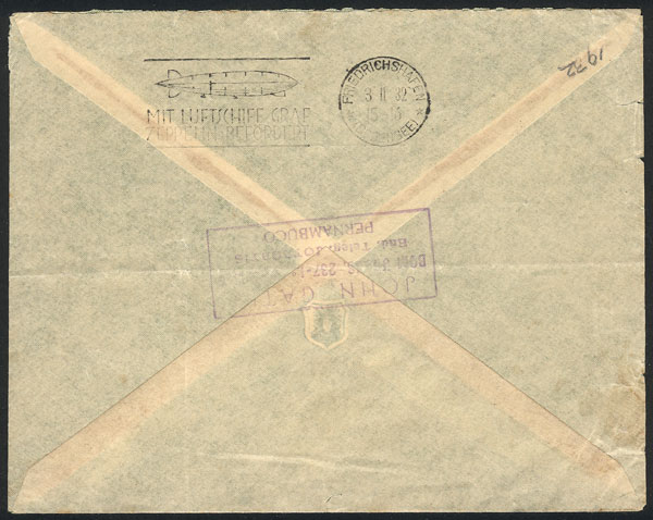 30/OC/1932 Pernambuco - Scotland, via ZEPPELIN: with Friedrichshafen transit backstamp, minor defects, very nice. (Image) (Image-02)