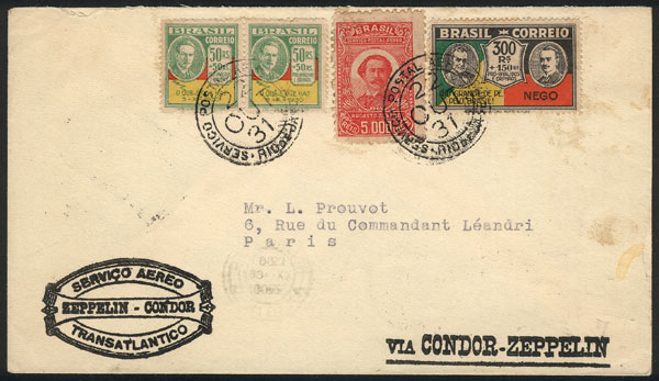 22/OC/1931 Rio de Janeiro - France, via ZEPPELIN: Cover with handsome postage, fine quality! (Image) (Image-02)