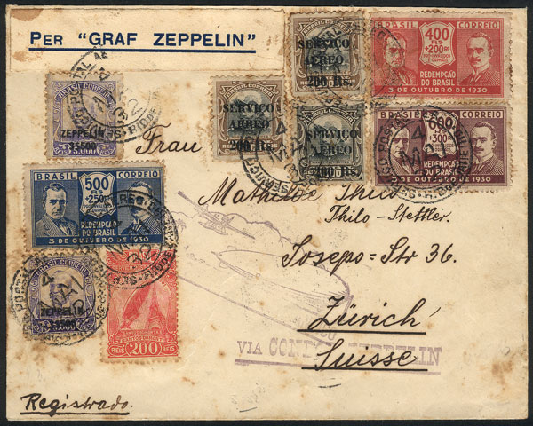 Cover sent via ZEPPELIN from Rio to Switzerland on 4/MAY/1932, with very nice multicolored postage, very attractive! (Image) (Image-02)