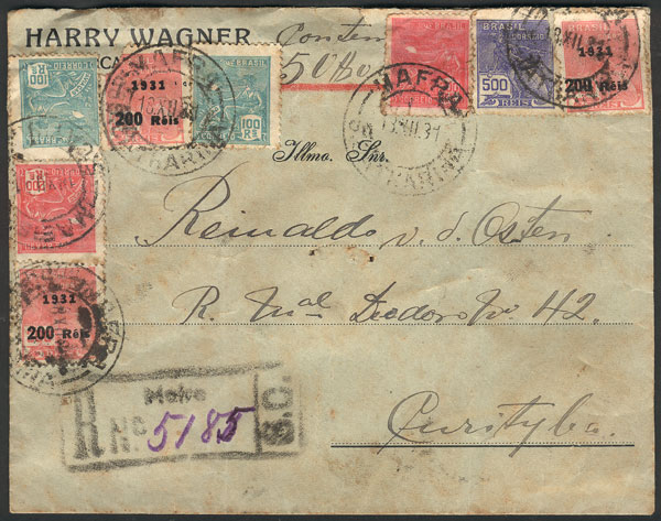 Registered cover with declared value sent from MAFRA to Curitiba on 18/DE/1931, very interesting! (Image) (Image-02)