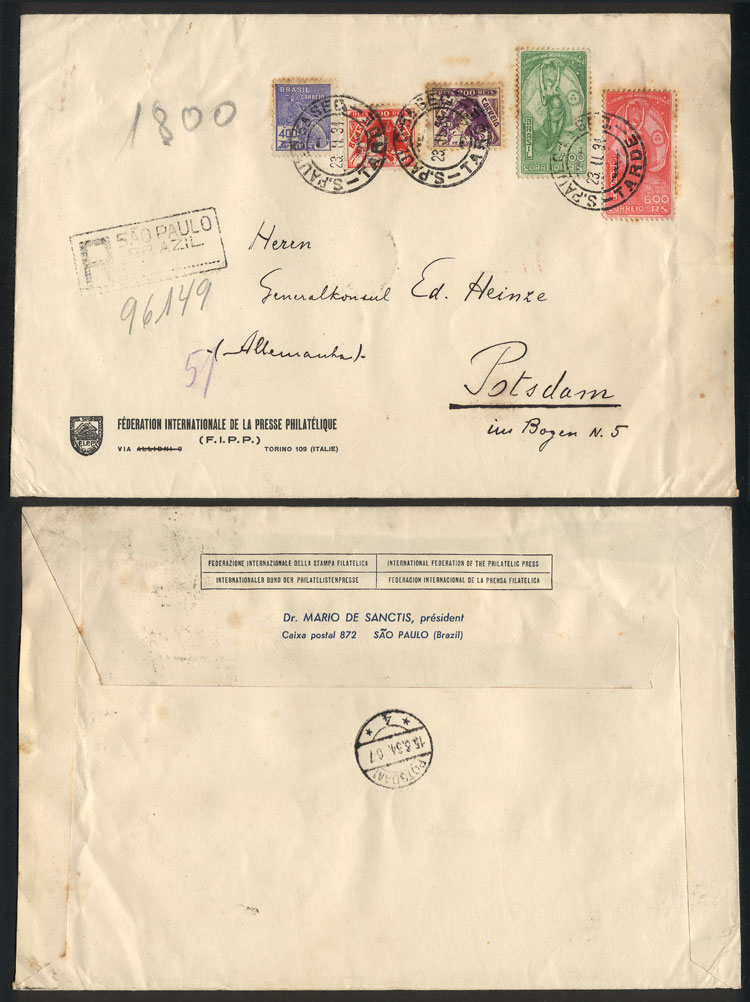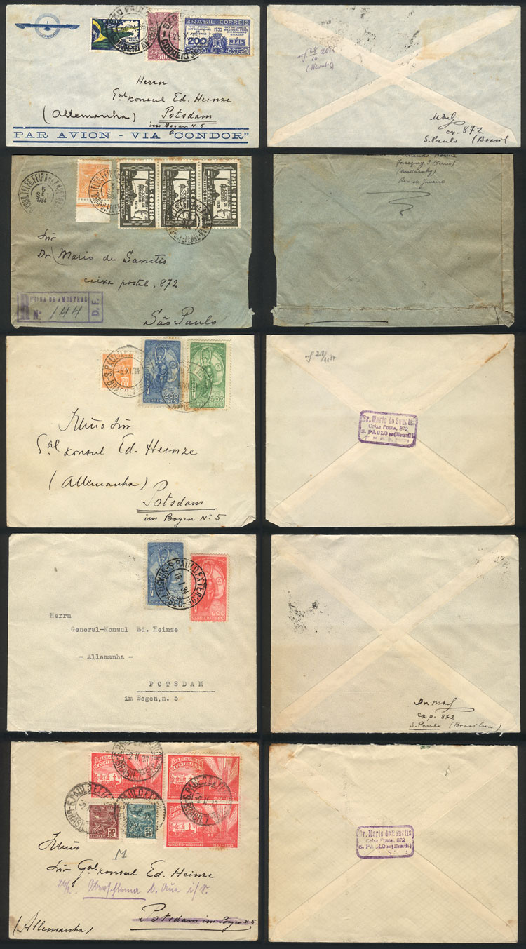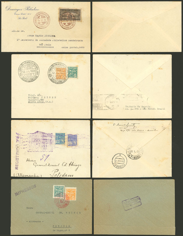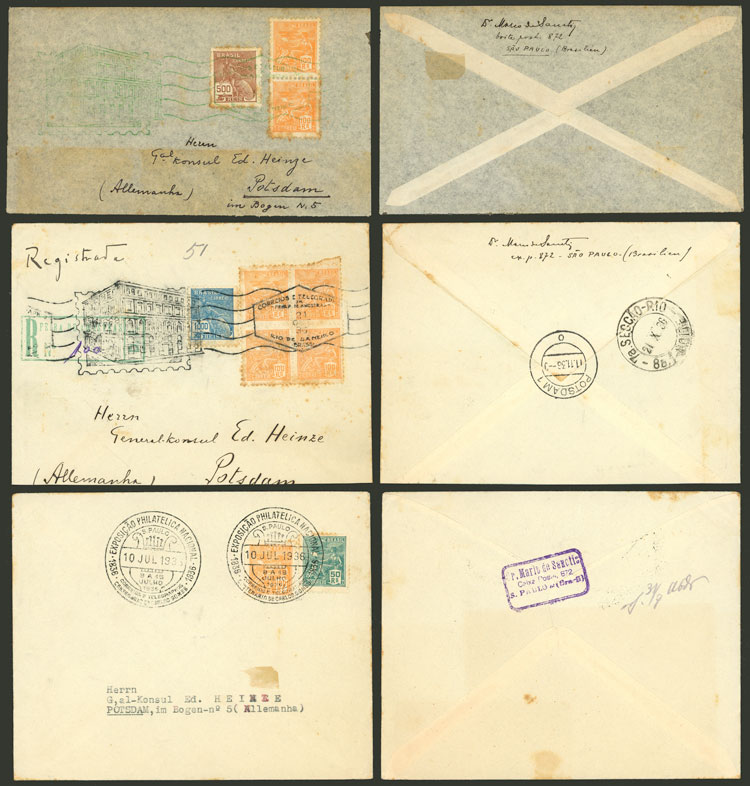 Registered covers sent from Sao Paulo to Germany between 1934 and 1936, with spectacular postages that include commemorative stamps, very nice and attractive!!