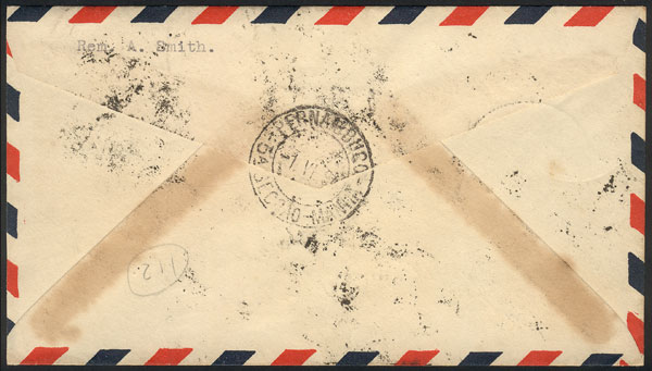 30/MAY/1934 Rio - Pernambuco, via ZEPPELIN: Cover with nice postage, with arrival backstamp of 1/JUN, VF! (Image) (Image-02)