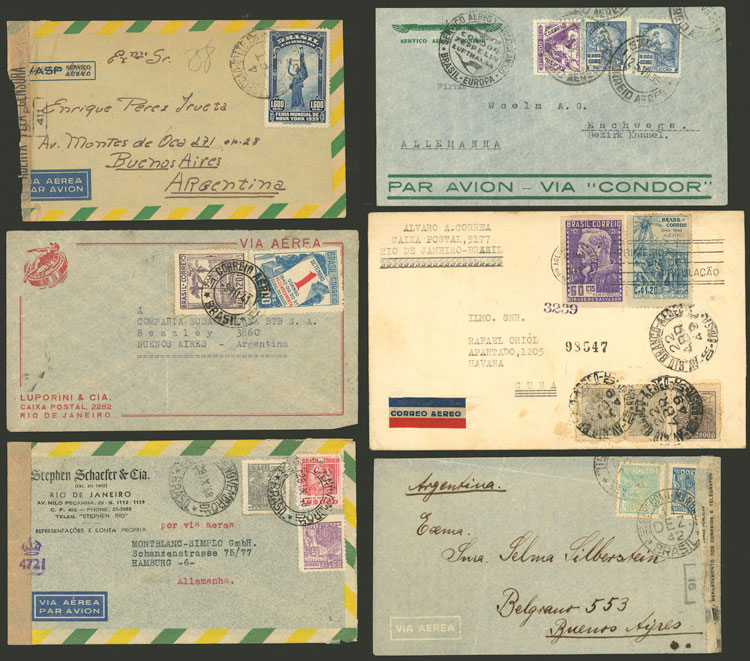 Used covers (circa 1941/3) franked with 1, 2 or 3 examples of RHM.C-160, all of VF quality, very high catalog value, good opportunity! (Image) (Image-02)