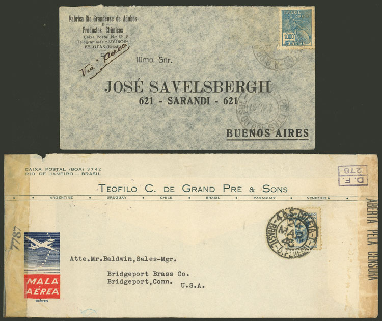Registered airmail cover sent from Rio to Argentina in FE/1942 franked with 6,000Rs., very nice! (Image) (Image-02)