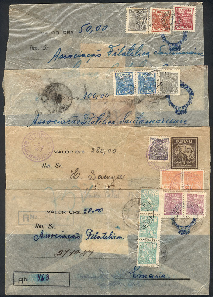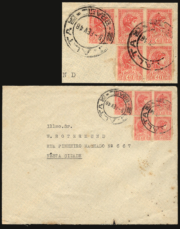 franked with REVENUE stamps used as postage stamps (5x 40Rs.), used in Cruz Alta on 9/FE/1948, VF and rare! (Image)