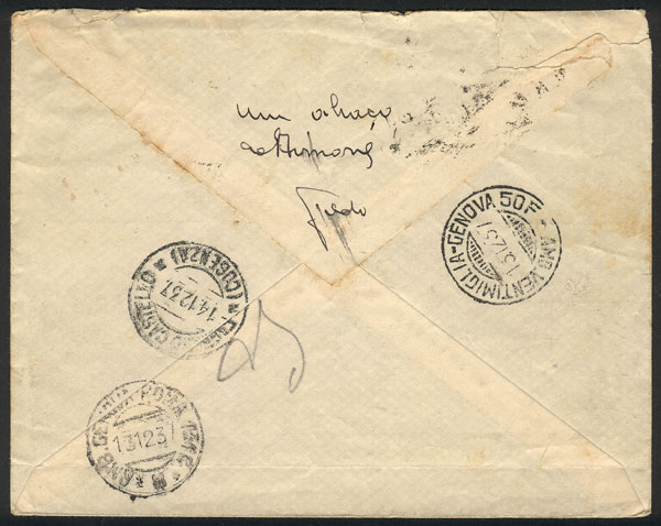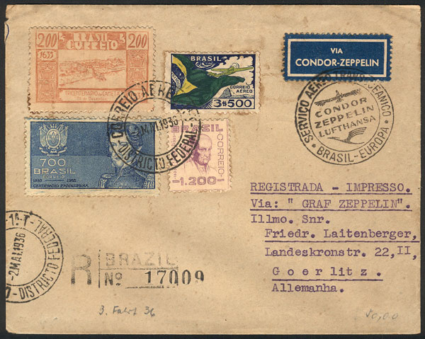Registered airmail cover sent from TAQUARITINGA to Italy on 7/DE/1937, spectacular commemorative postage for 5,600Rs., VF quality! (Image) (Image-02)