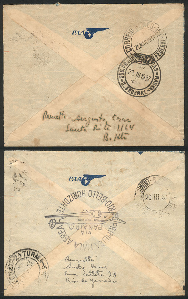 MARCH 1937: PANAIR first flights between Rio and Bello Horizonte, 2 very nice covers! (Image) (Image-02)