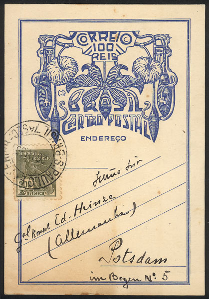 RHM.BP-150, postal card uprated with 300Rs., sent from Sao Paulo to Germany on 26/AP/1935, excellent quality! (Image) (Image-02)