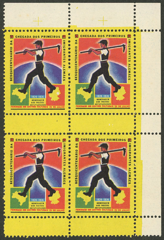 1974, 1950th anniversary of the arrival of the first German immigrants to Brazil, beautiful corner block of 4! (Image)