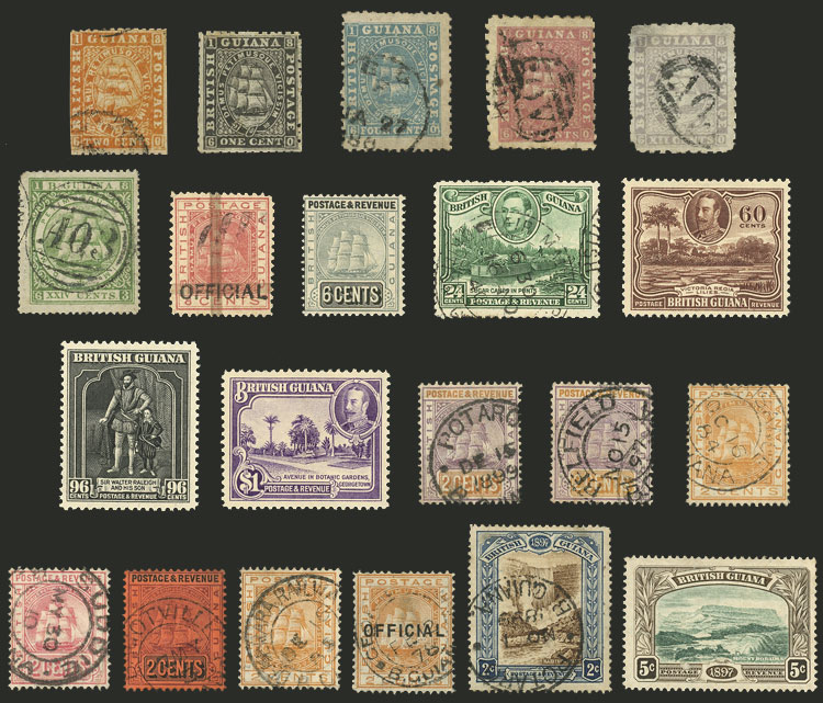 good old values, used or mint with original gum (most with light hinge marks, a couple without gum), very fine quality, high catalog value. It includes several stamps with scarce cancels: Bagotville, Belfield, Plaisance, Potaro, Demerara Railway,