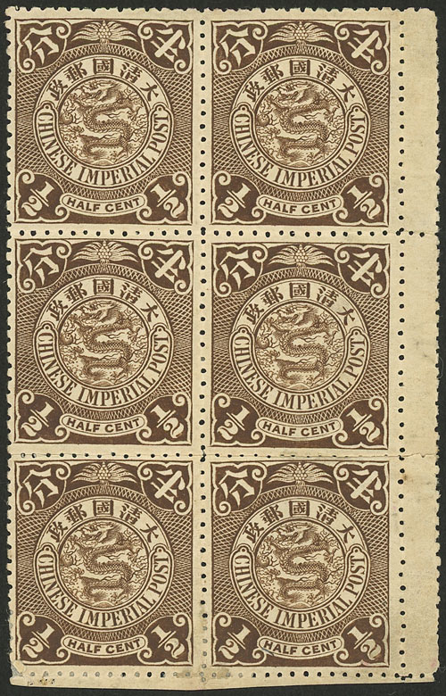 1898 ½c. chocolate, corner block of 6 stamps, mint with original gum, fine quality! (Image)