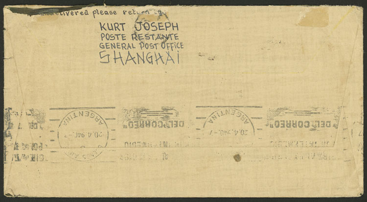 1/MAR/1940 Shanghai - Argentina, cover franked with 80c., arrival backstamp of Buenos Aires 20/AP, minor defects on the right border, very nice!
