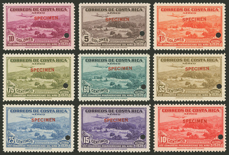 Pan-American Child Congress, UNISSUED set, with SPECIMEN overprint and punch hole, very fine quality, rare! (Image)
