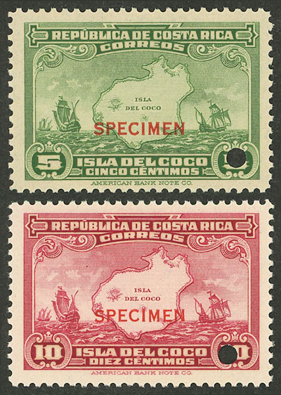 172/173, 1937 Cocos Island, the set of 2 values with SPECIMEN overprint and punch hole, excellent quality! (Image)