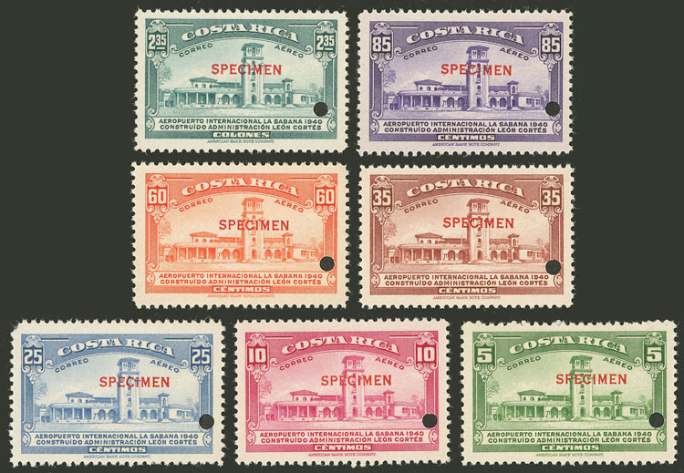 38/44, 1940 Airport of La Sabana, set of 7 values with SPECIMEN overprint and punch hole, VF! (Image)