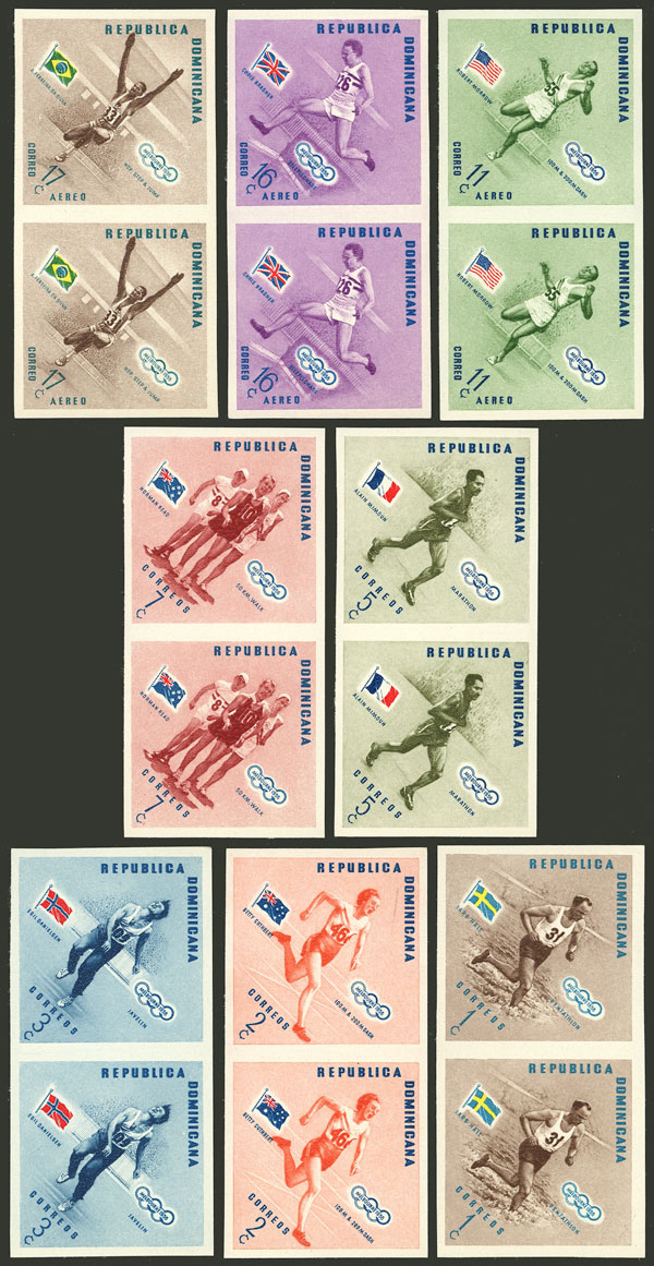 457/461 + A.108/110, 1957 Melbourne Olympic games, set of 8 IMPERFORATE PAIRS, MNH, excellent quality! (Image)