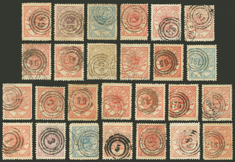 26 used stamps of the 1864 issue, all with attractive numeral cancels, it includes some high values, in general of fine to very fine quality, low start! (Image)