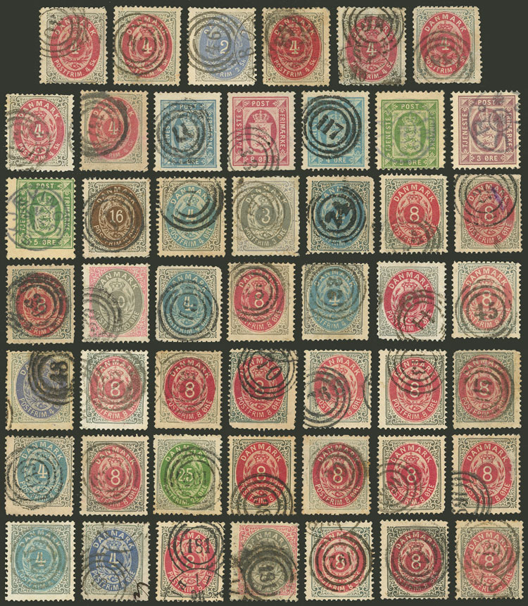 48 old used stamps, all with attractive numeral cancels, it includes some high values, in general of fine to very fine quality, low start! (Image)