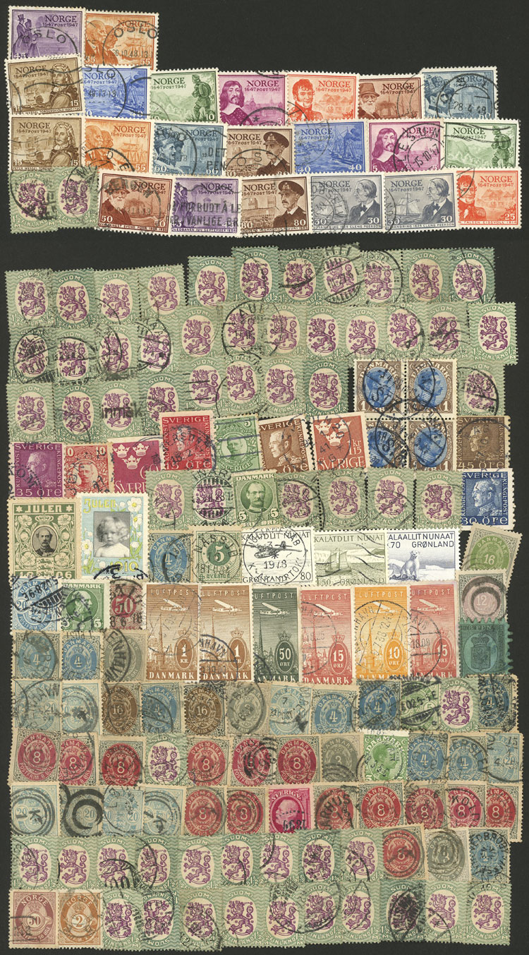 SCANDINAVIAN COUNTRIES: Lot of old stamps, very interesting range of cancels and with some good values, most of fine quality! (Image)