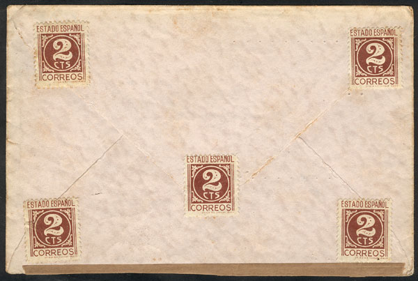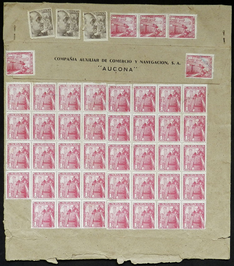 LARGE POSTAGE: Airmail cover sent from Madrid to Argentina on 9/OC/1950 franked with 160Ptas. (with many stamps affixed on front and back, those on back are not cancelled). Some stamps of the original postage may be missing, all the same