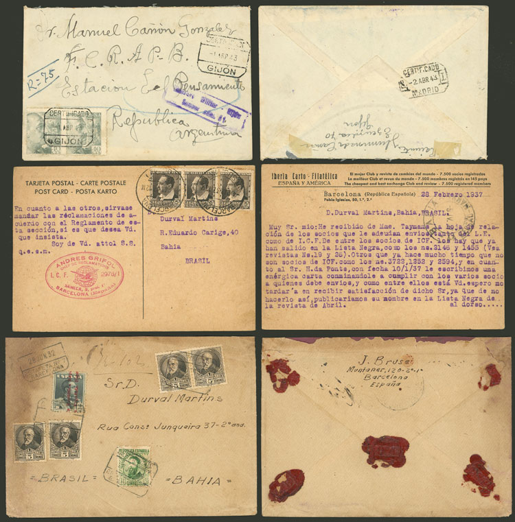 Covers, cards, etc. sent to Argentina and Brazil between 1932 and 1944, many CENSORED, nice frankings and postal marks, attractive lot! IMPORTANT: Please view ALL the photos of the lot, because all the material has been scanned. (Image) (Image-02)