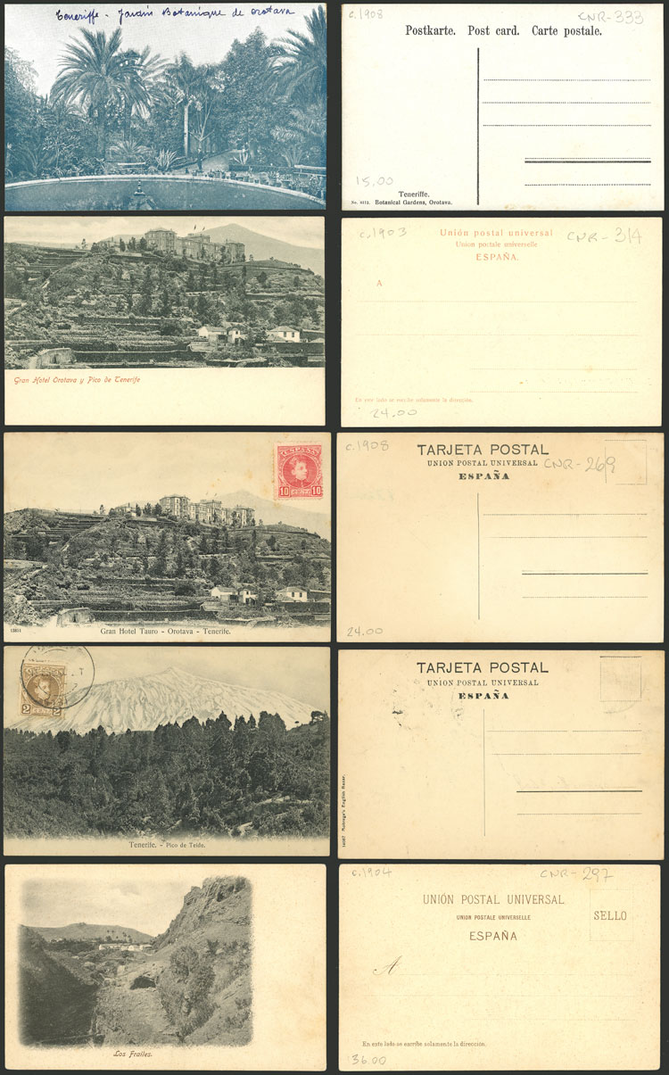 TENERIFE: 15 Old postcards with very good views, fine to VF general quality. ATTENTION: please view all the photos of this lot, because all the cards have been scanned (both sides). (Image) (Image-02)
