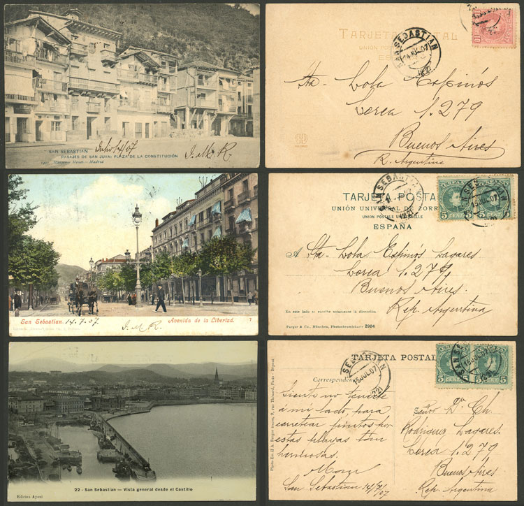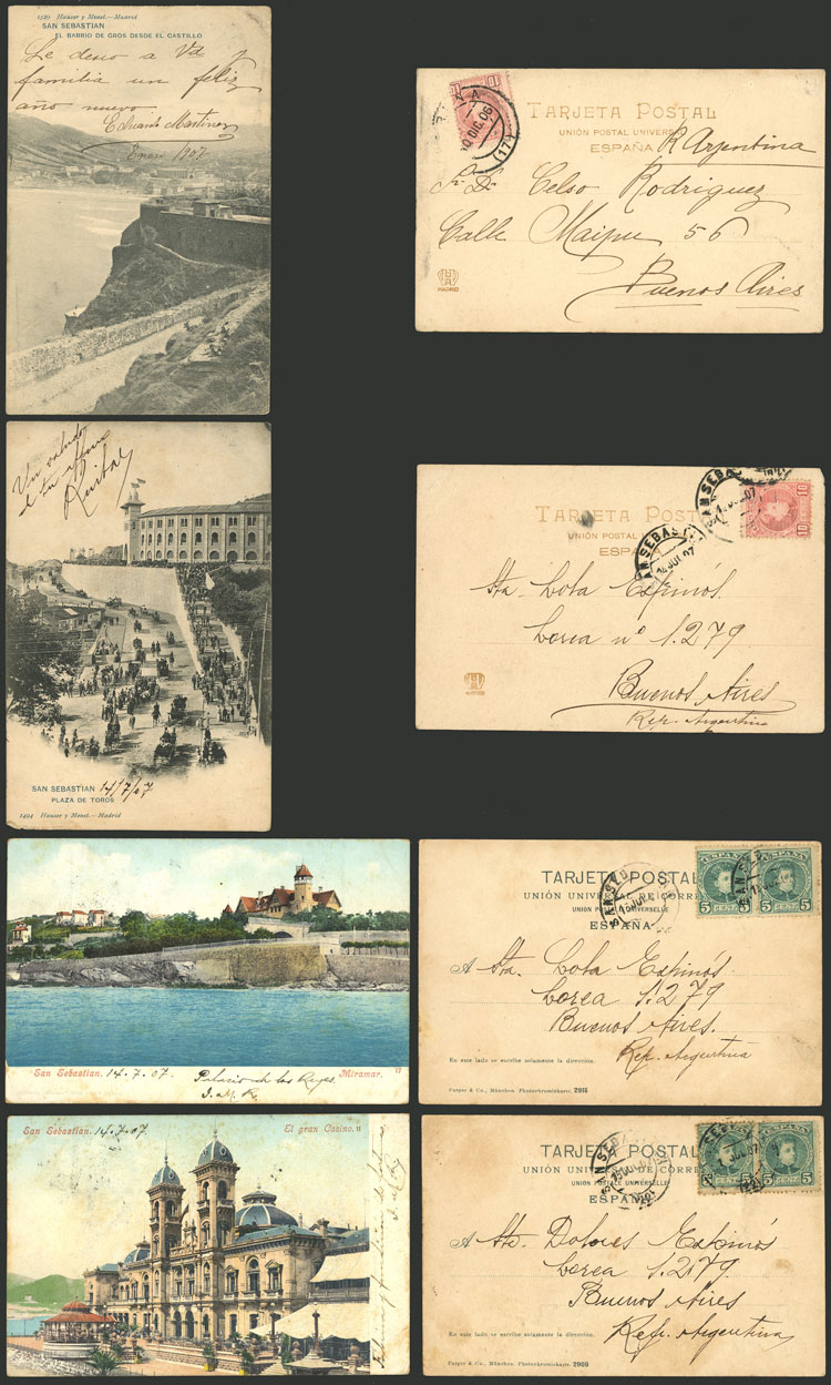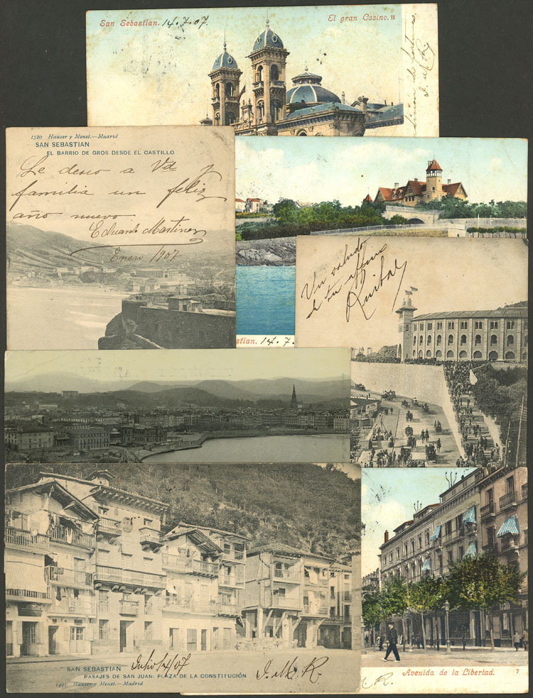 SAN SEBASTIAN: 7 Old postcards with very good views, fine to VF general quality. ATTENTION: please view all the photos of this lot, because all the cards have been scanned (both sides). (Image) (Image-02)