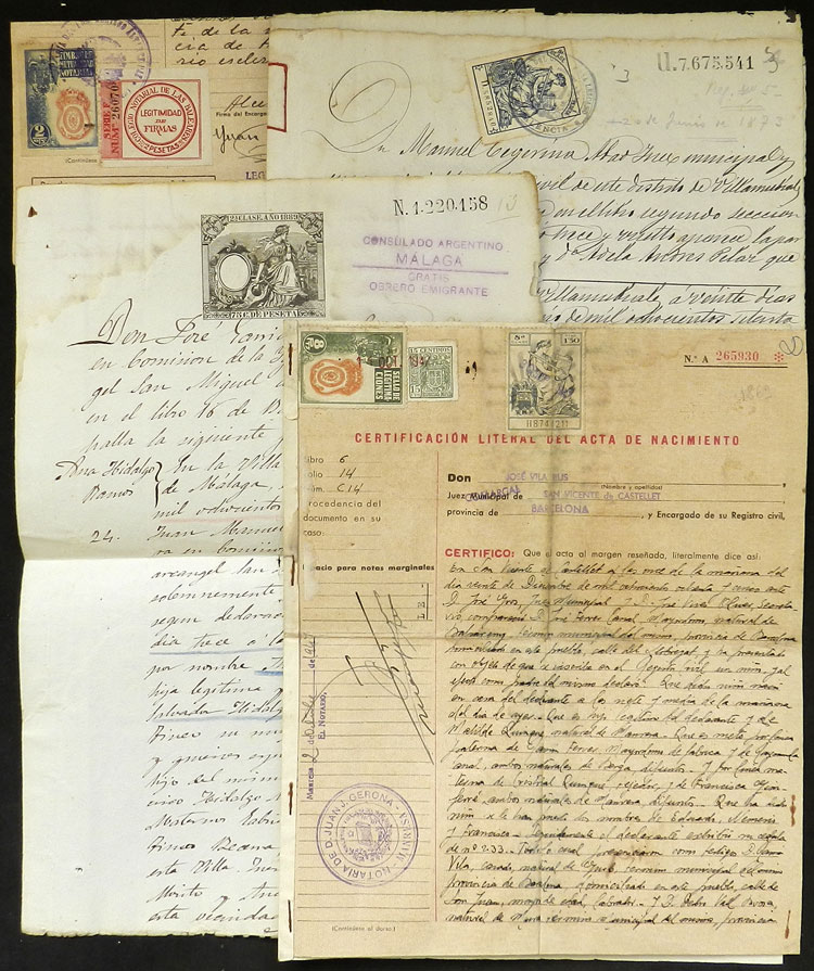 old stamps with interesting cancellations, most are carterias, one estafeta, also a nice old PERFIN, very fine general quality! (Image)