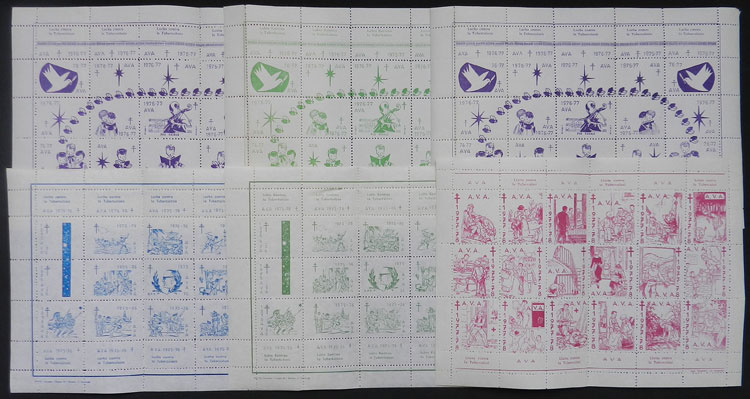 FIGHT AGAINST TUBERCULOSIS: 14 modern sheets, 5 imperforate, all different. The imperforate sheets are folded in the middle and the rest have minor defects in the sheet margin (not affecting the labels), excellent appearance, interesting